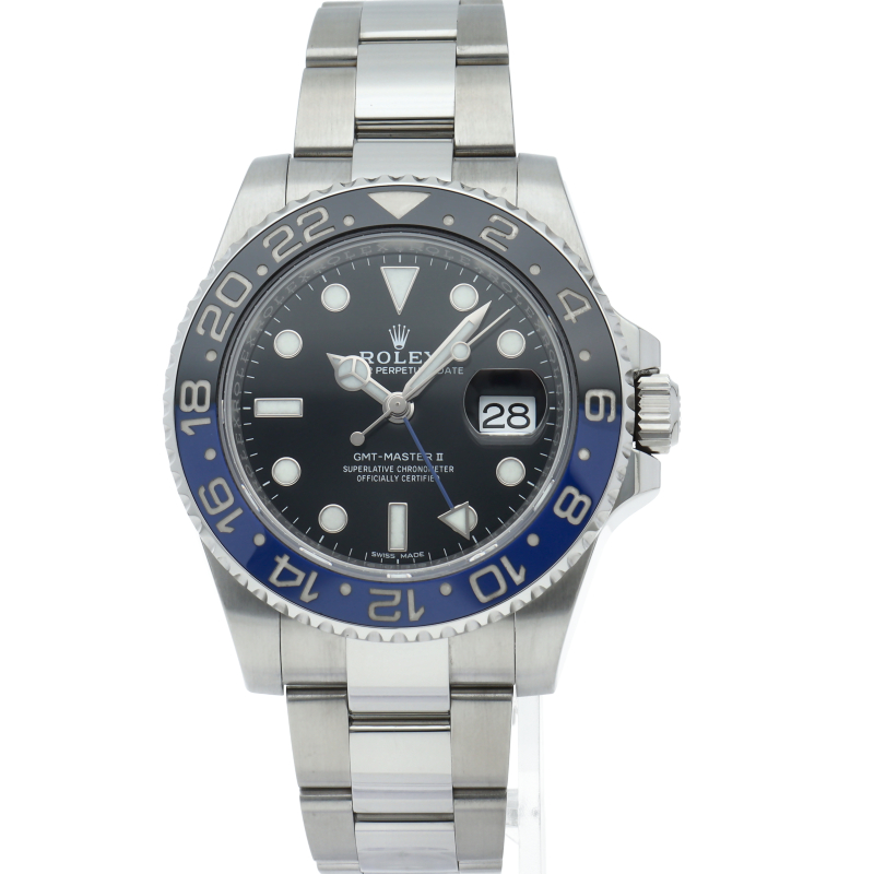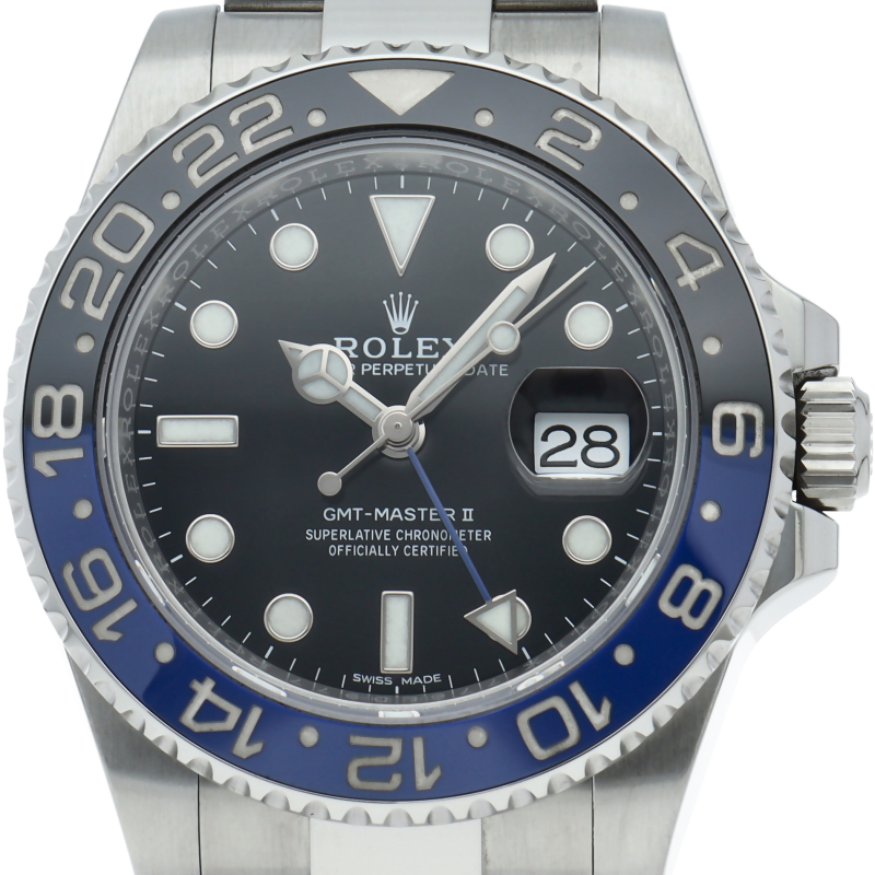 3ヶ国の時間を把握できるGMT機能を備えたロレックス唯一のパイロットウォッチであるGMTマスターII。視認性UPの為に大型化されたインデックス、耐磁性能に優れたパラクロムヒゲゼンマイ、ならびに頑強なケース、ブレスという優れた機能と耐久性を兼ね備えた人気モデルです。