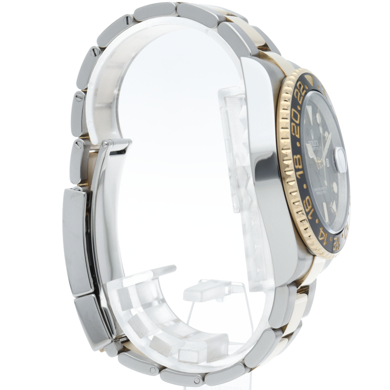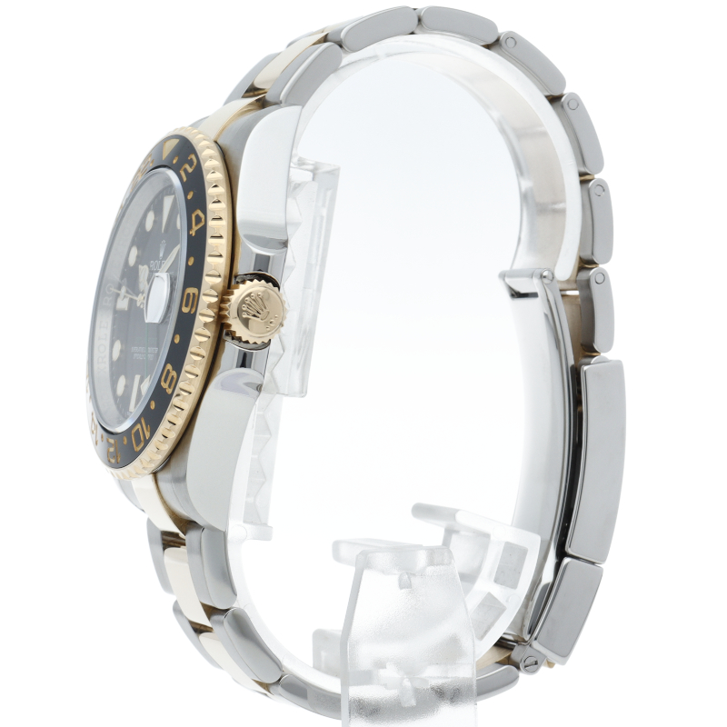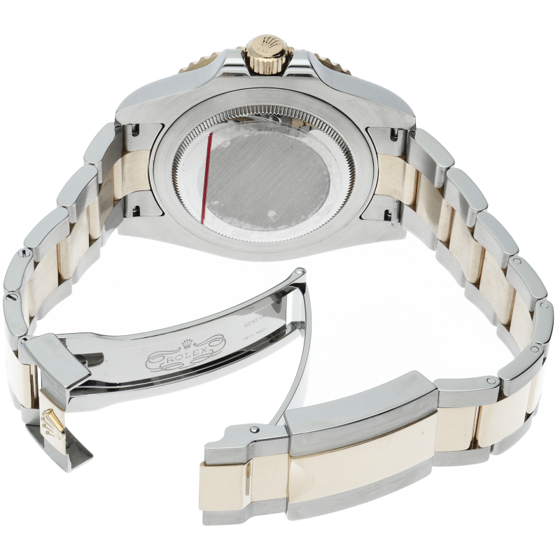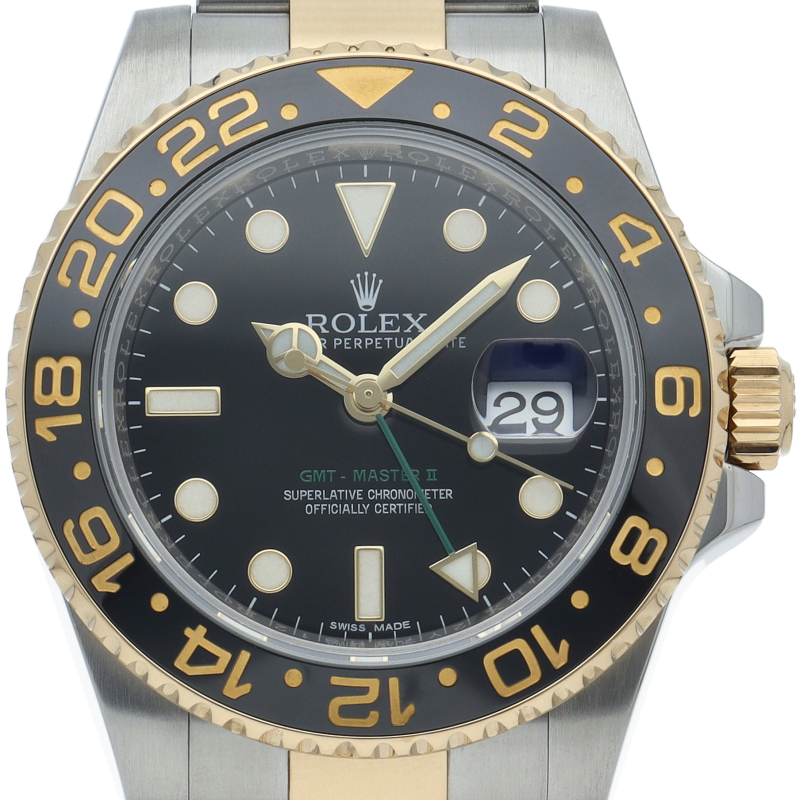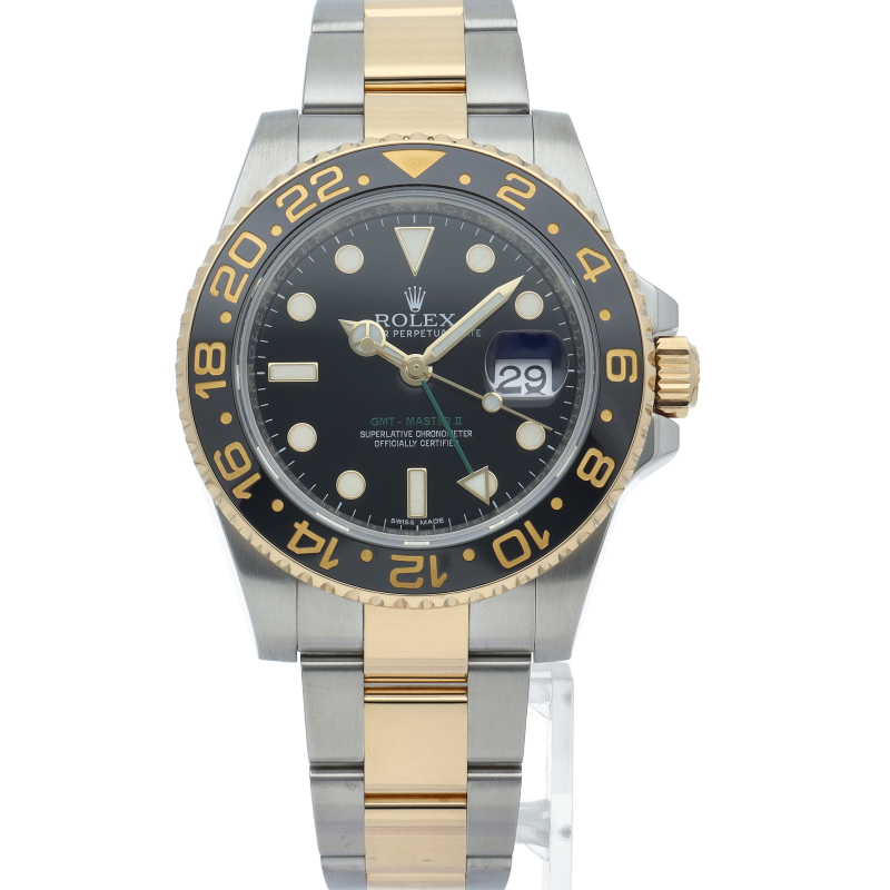 ロレックス人気モデル「GMTマスター2」のモデルチェンジにともない生産終了となった116713LNです。ワンランク上のイエローゴールド仕様のコンビモデルです。