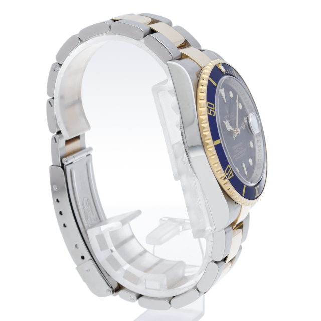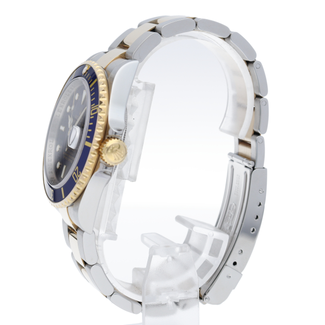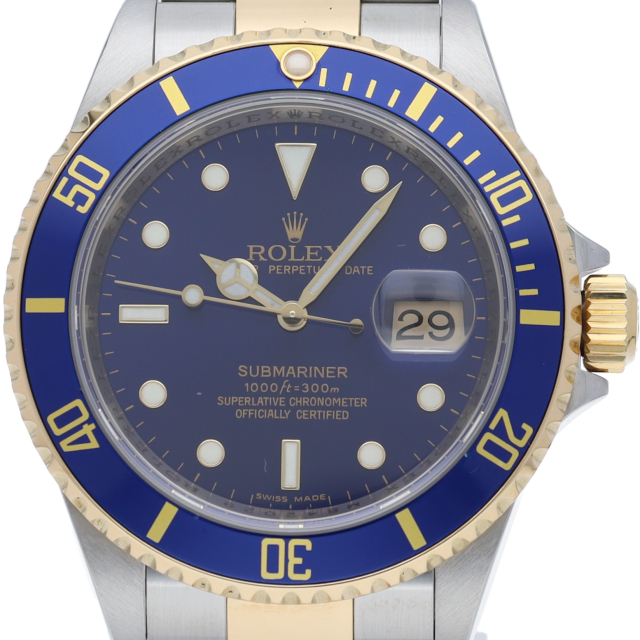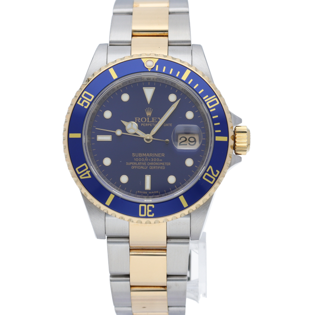 ロレックスの中でも特に人気度の高い「サブマリーナ・デイト」。イエローゴールドとステンレスのコンビモデルで高級感溢れる1本。通称「青サブ」。