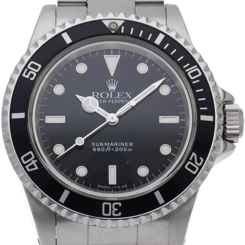 サブマリーナの中でも特に人気を博しているのが「Ref.5513」。長く続くサブ史上最高のロングセラーで、ノンデイトサブの代表格となっています。現行モデルにはない、アンティークモデル特有の丸みをおびたデザインが人気を呼んでいます。文字盤のフチ有り仕様となっております。