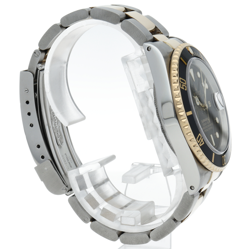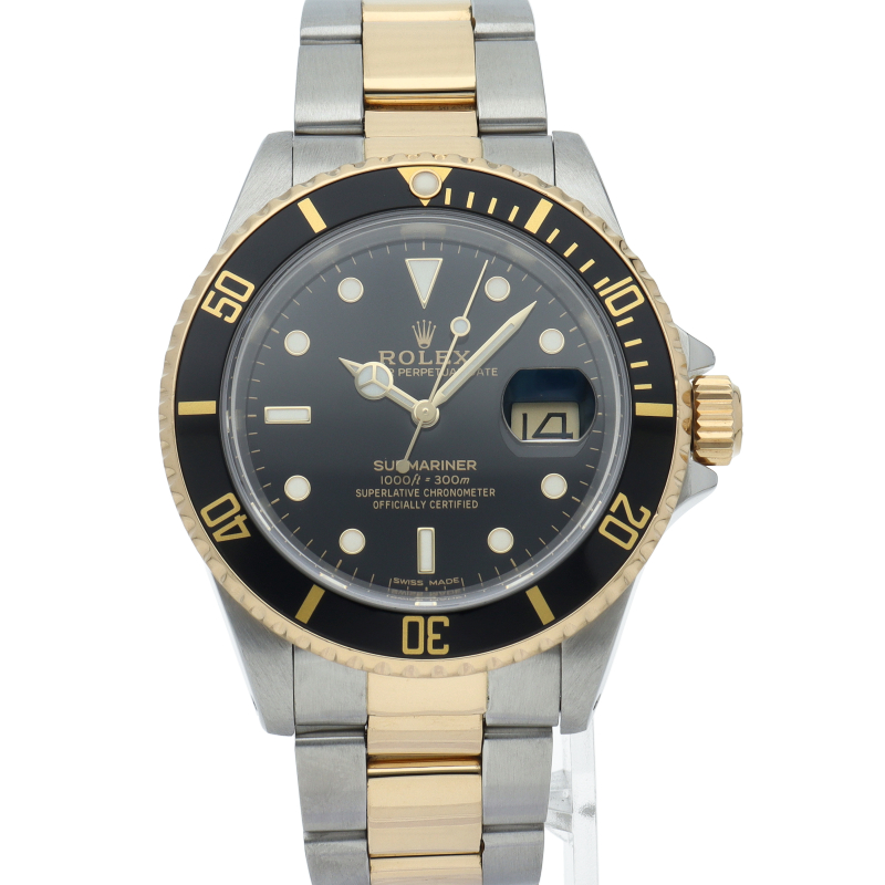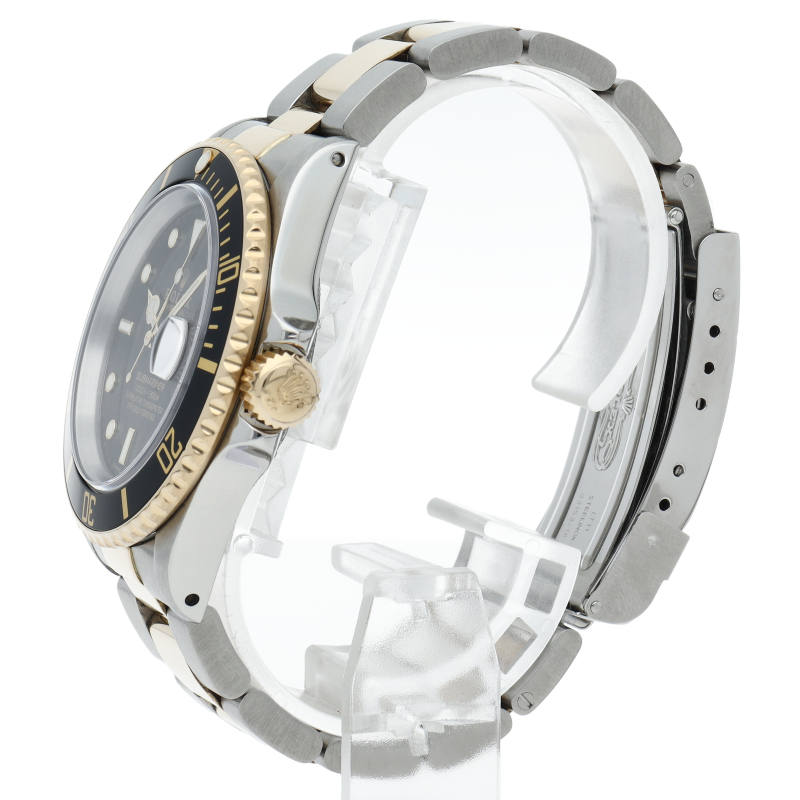 ロレックスの中でも特に人気度の高い「サブマリーナ・デイト」。イエローゴールドとステンレスのコンビモデルで高級感溢れる1本。通称「黒サブ」。