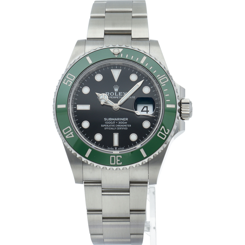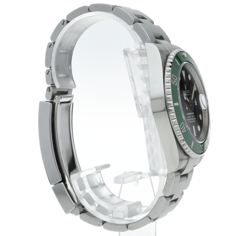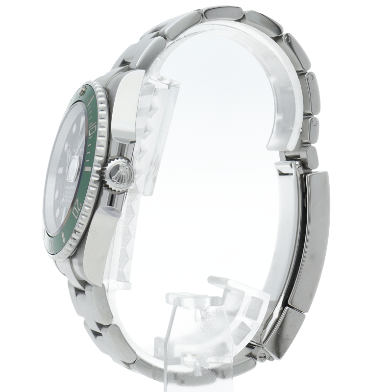 2003年にサブマリーナ誕生50周年記念として発表され高い人気を誇る“グリーンサブマリーナ”が新型自社ムーブメントを搭載しモデルチェンジしました。ブランドカラーであるグリーンのセラミックベゼルはそのままに文字盤がブラックになりました。ケースサイズは前作より1mm大きい41mmとなります。