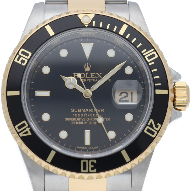 ロレックスの中でも特に人気度の高い「サブマリーナ・デイト」。イエローゴールドとステンレスのコンビモデルで高級感溢れる1本。