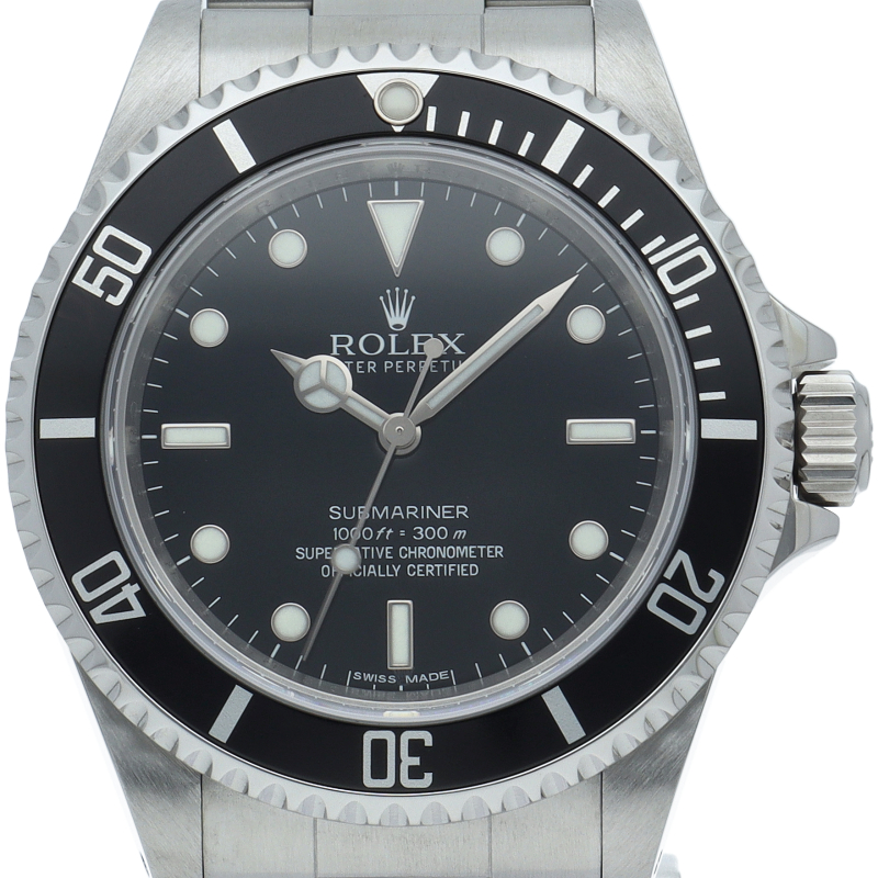 ロレックスの中でも特に人気のダイバーズウォッチ。「14060M」は、シンプルな3針で時計本来の機能を追及した実用的な1本。クロノメーター仕様。14060Mの最終シリアルとなるランダム品番。
