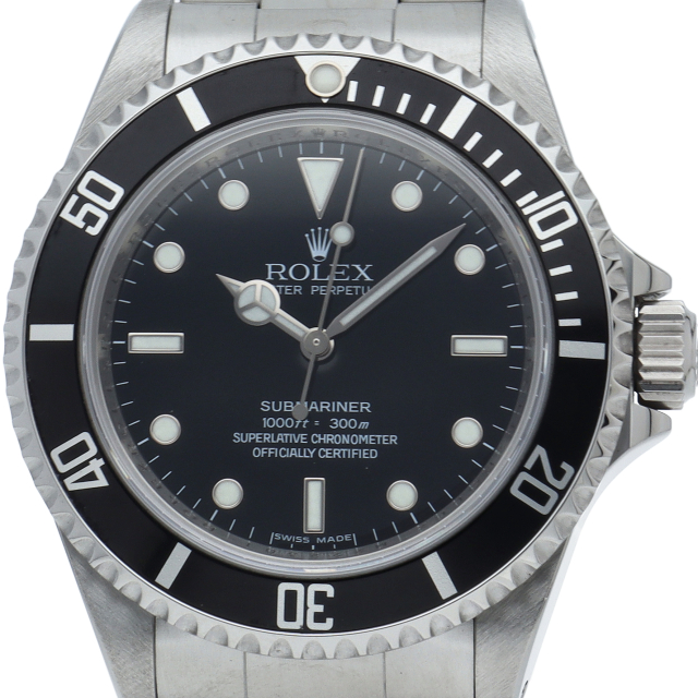ロレックスの中でも特に人気のダイバーズウォッチ。「14060M」は、シンプルな3針で時計本来の機能を追及した実用的な1本。クロノメーター仕様。14060Mの最終シリアルとなるランダム品番。