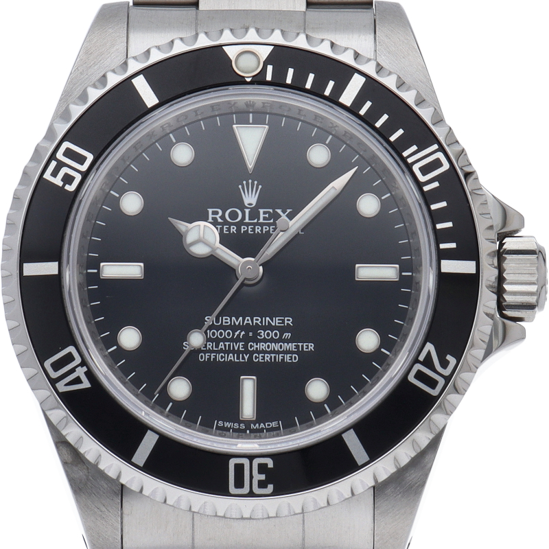 ロレックスの中でも特に人気のダイバーズウォッチ。「14060M」は、シンプルな3針で時計本来の機能を追及した実用的な1本。クロノメーター仕様。14060Mの最終シリアルとなるランダム品番。