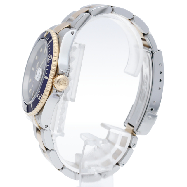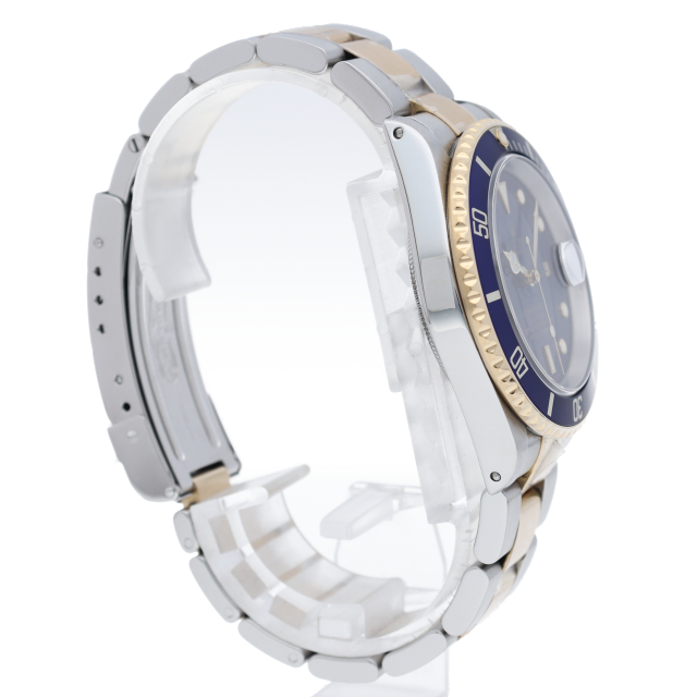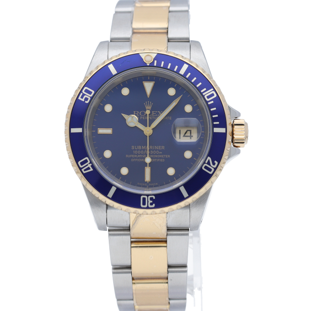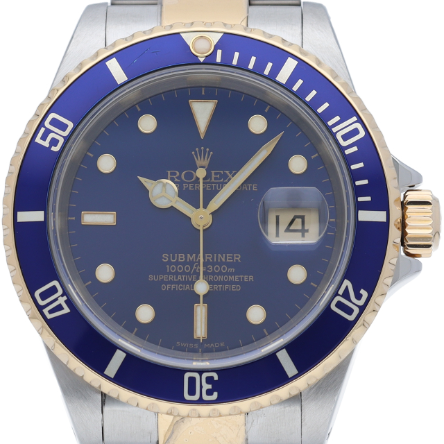ロレックスの中でも特に人気度の高い「サブマリーナ・デイト」のイエローゴールドとステンレスのコンビモデルで高級感溢れる1本。通称「青サブ」。