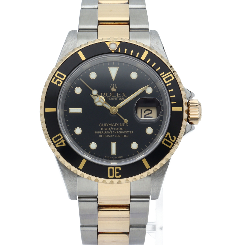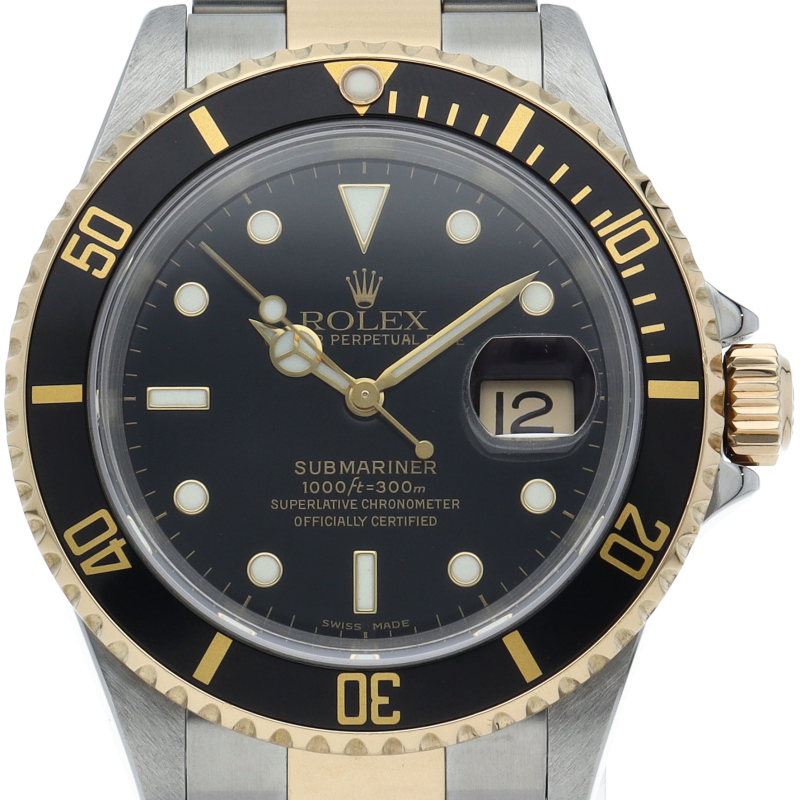 ロレックスの中でも特に人気度の高い「サブマリーナ・デイト」のイエローゴールドとステンレスのコンビモデルで高級感溢れる1本。