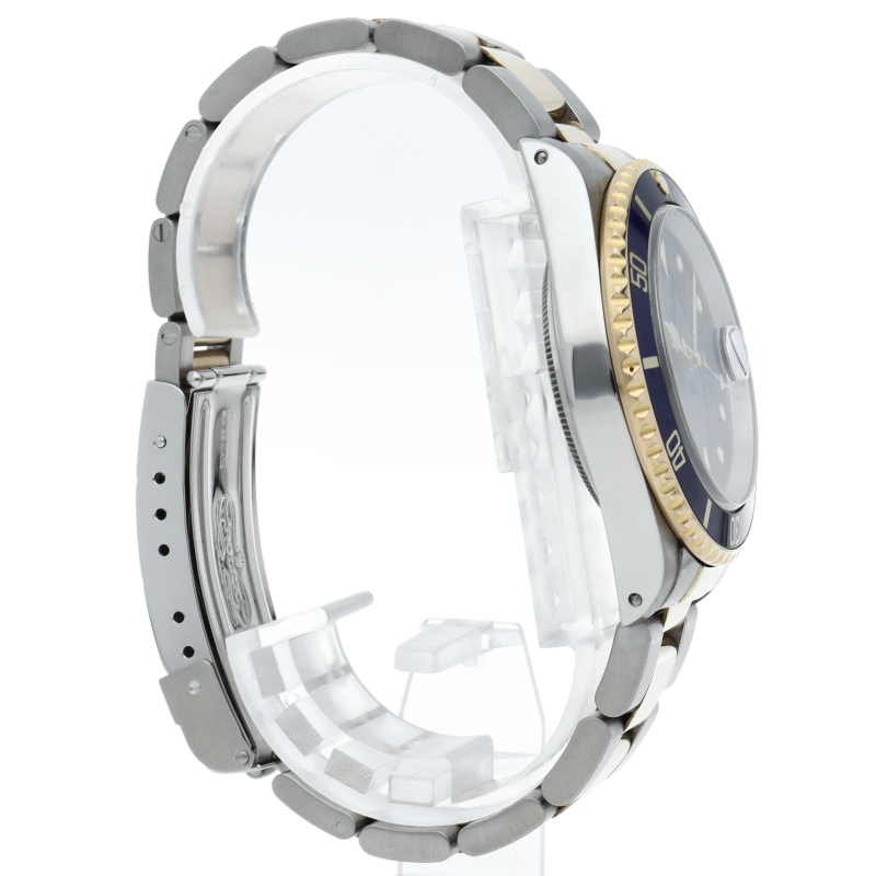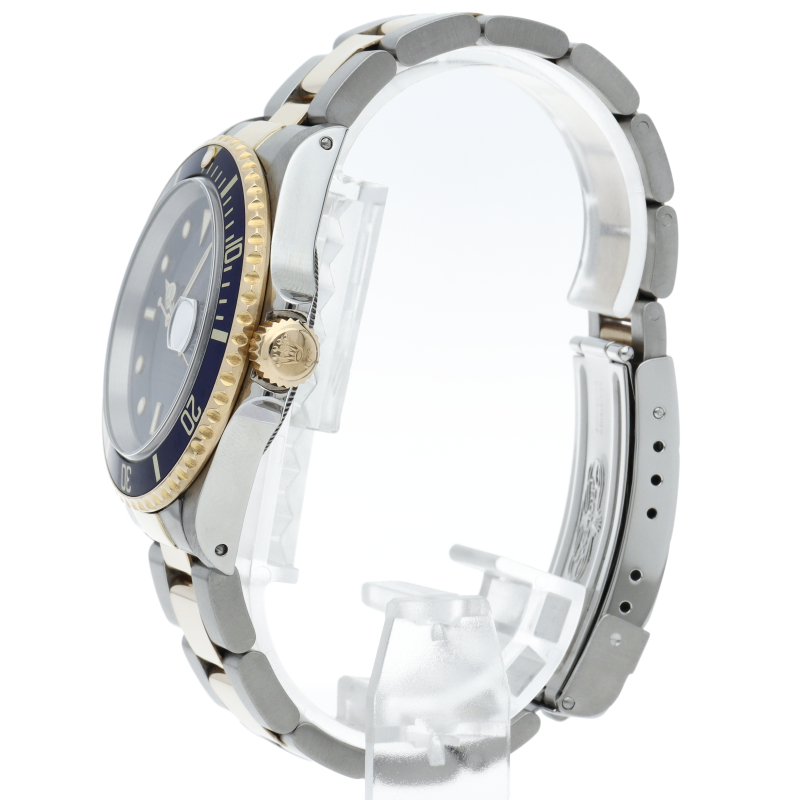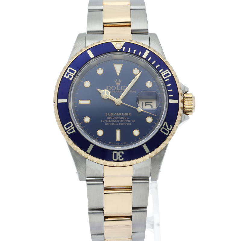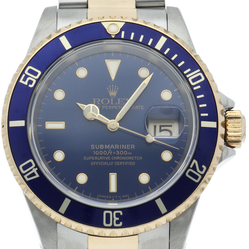 ロレックスの中でも特に人気度の高い「サブマリーナ・デイト」のイエローゴールドとステンレスのコンビモデルで高級感溢れる1本。通称「青サブ」。
