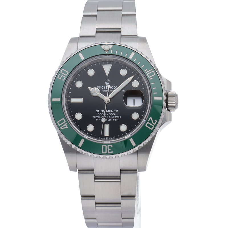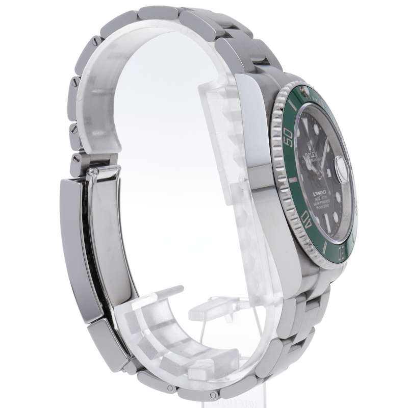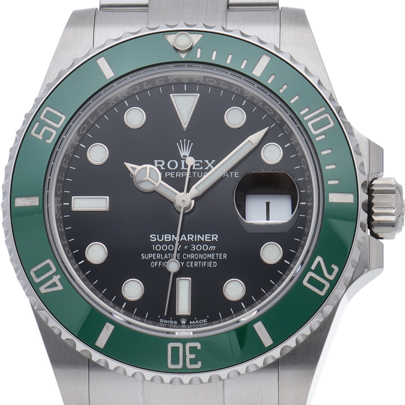 2003年にサブマリーナ誕生50周年記念として発表され高い人気を誇る“グリーンサブマリーナ”が新型自社ムーブメントを搭載しモデルチェンジしました。ブランドカラーであるグリーンのセラミックベゼルはそのままに文字盤がブラックになりました。ケースサイズは前作より1mm大きい41mmとなります。