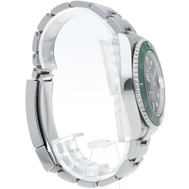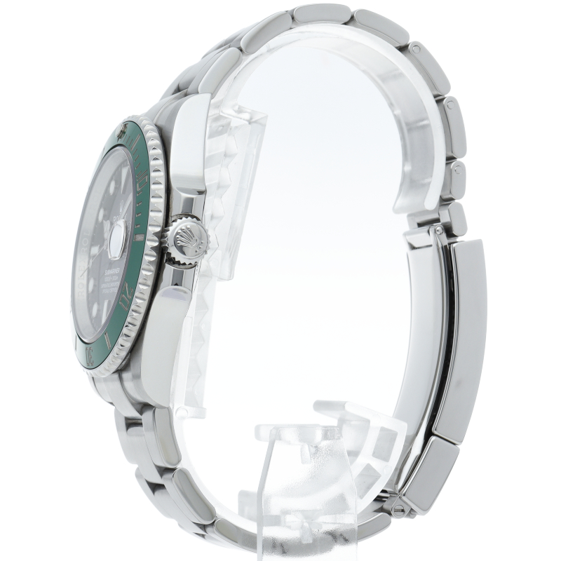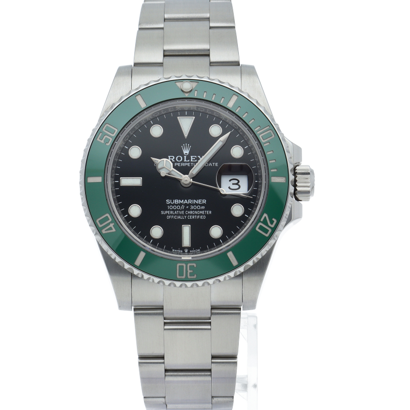 2003年にサブマリーナ誕生50周年記念として発表され高い人気を誇る“グリーンサブマリーナ”が新型自社ムーブメントを搭載しモデルチェンジしました。ブランドカラーであるグリーンのセラミックベゼルはそのままに文字盤がブラックになりました。ケースサイズは前作より1mm大きい41mmとなります。