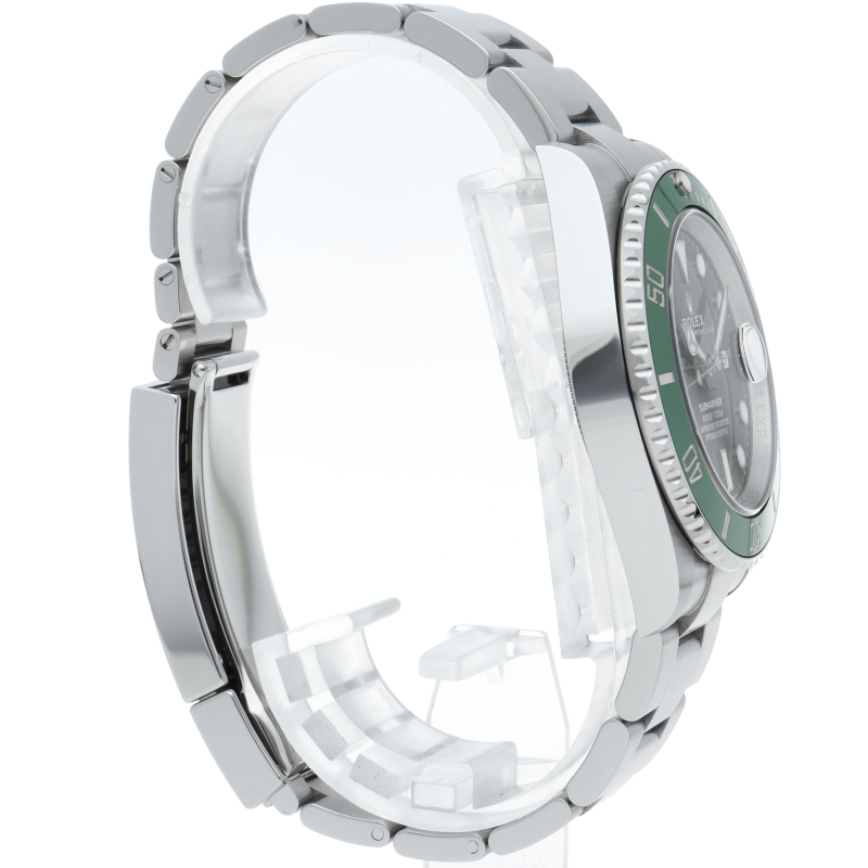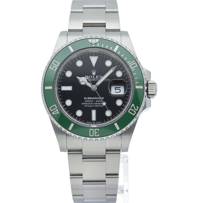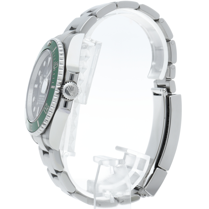 2003年にサブマリーナ誕生50周年記念として発表され高い人気を誇る“グリーンサブマリーナ”が新型自社ムーブメントを搭載しモデルチェンジしました。ブランドカラーであるグリーンのセラミックベゼルはそのままに文字盤がブラックになりました。ケースサイズは前作より1mm大きい41mmとなります。