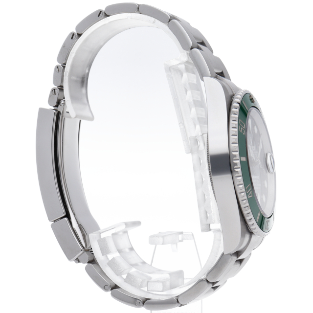 2003年にサブマリーナ誕生50周年記念として発表され高い人気を誇る“グリーンサブマリーナ”が新型自社ムーブメントを搭載しモデルチェンジしました。ブランドカラーであるグリーンのセラミックベゼルはそのままに文字盤がブラックになりました。ケースサイズは前作より1mm大きい41mmとなります。