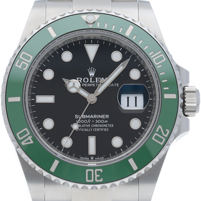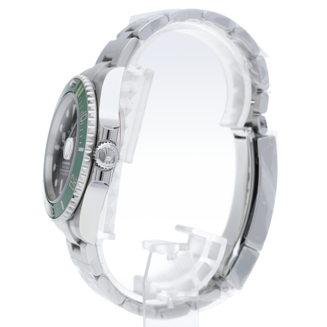 2003年にサブマリーナ誕生50周年記念として発表され高い人気を誇る“グリーンサブマリーナ”が新型自社ムーブメントを搭載しモデルチェンジしました。ブランドカラーであるグリーンのセラミックベゼルはそのままに文字盤がブラックになりました。ケースサイズは前作より1mm大きい41mmとなります。