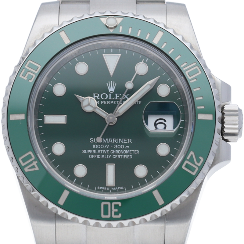 2020年にモデルチェンジを果たし、文字盤がグリーンなのは116610LVとなりました。そのため、生産終了にともなって相場が高騰中でこれからが楽しみな1本です。