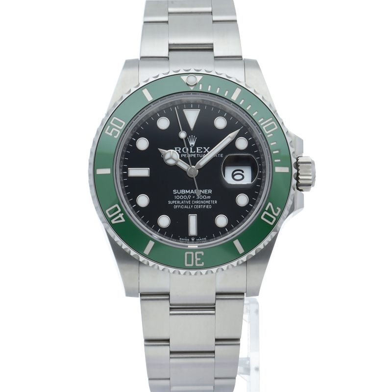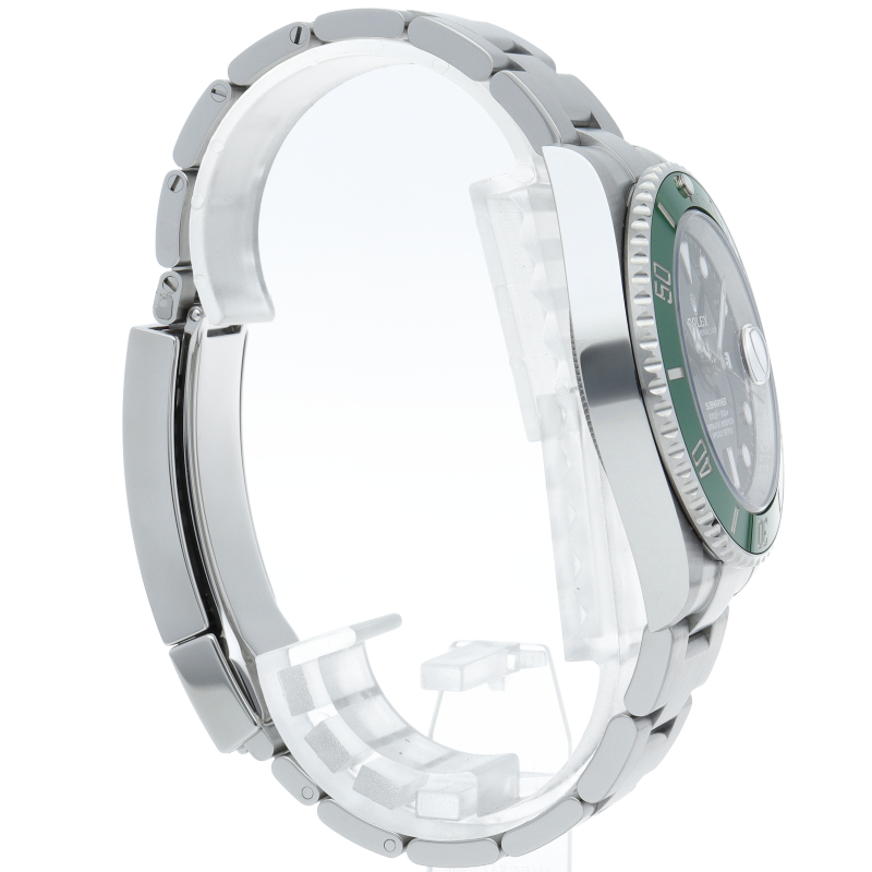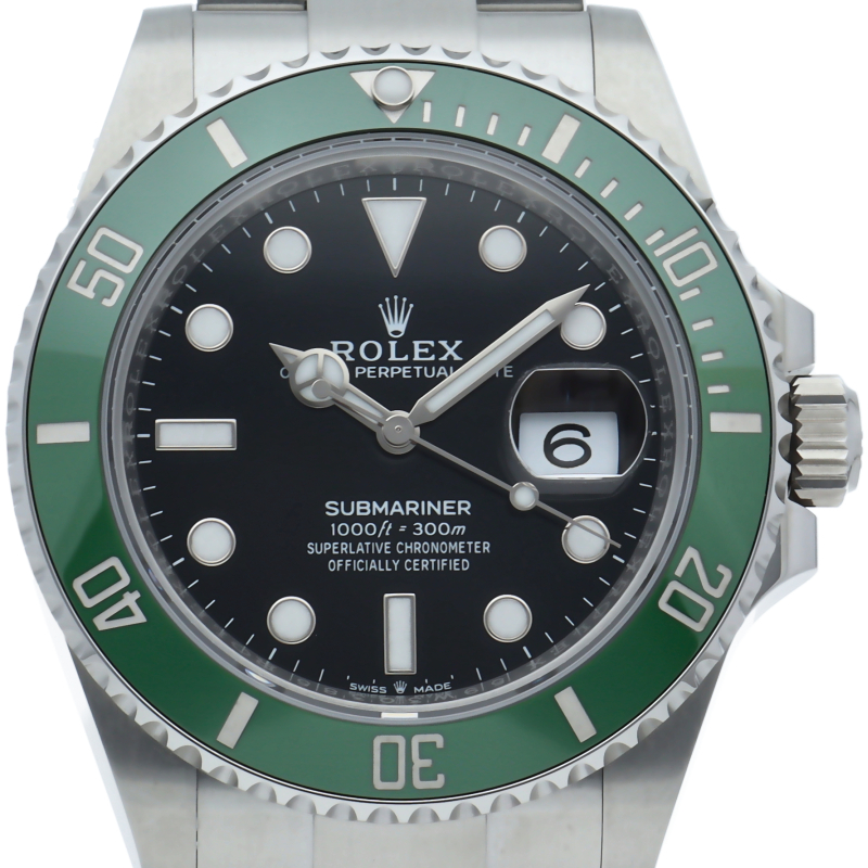 2003年にサブマリーナ誕生50周年記念として発表され高い人気を誇る“グリーンサブマリーナ”が新型自社ムーブメントを搭載しモデルチェンジしました。ブランドカラーであるグリーンのセラミックベゼルはそのままに文字盤がブラックになりました。ケースサイズは前作より1mm大きい41mmとなります。