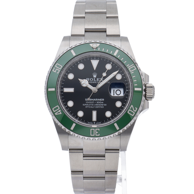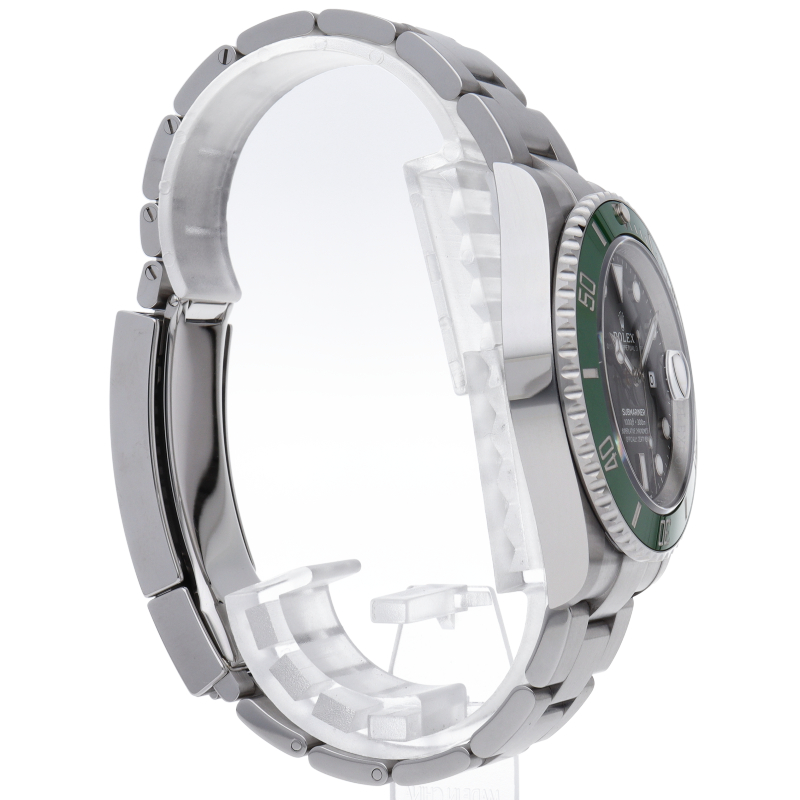 2003年にサブマリーナ誕生50周年記念として発表され高い人気を誇る“グリーンサブマリーナ”が新型自社ムーブメントを搭載しモデルチェンジしました。ブランドカラーであるグリーンのセラミックベゼルはそのままに文字盤がブラックになりました。ケースサイズは前作より1mm大きい41mmとなります。