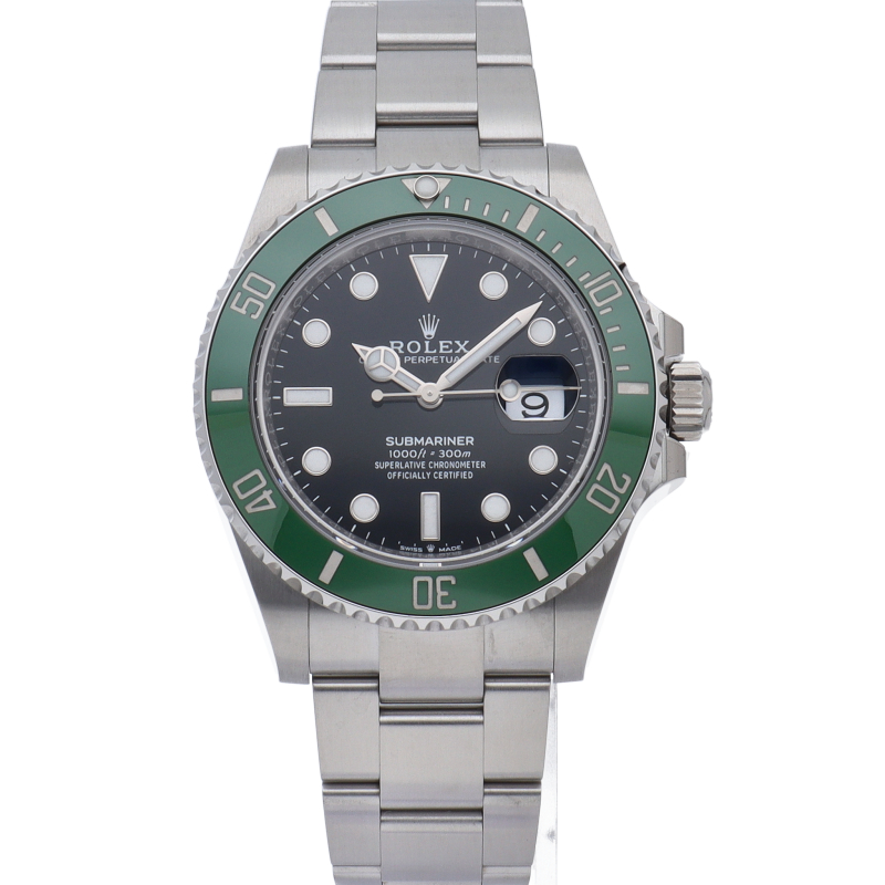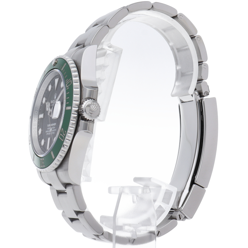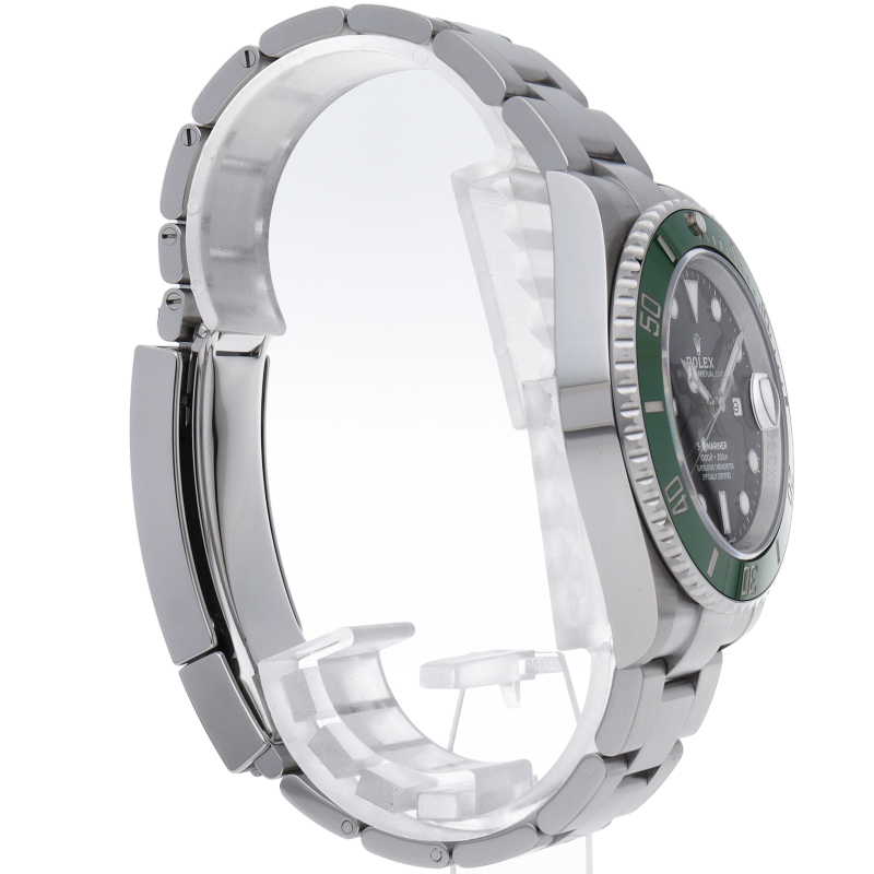 2003年にサブマリーナ誕生50周年記念として発表され高い人気を誇る“グリーンサブマリーナ”が新型自社ムーブメントを搭載しモデルチェンジしました。ブランドカラーであるグリーンのセラミックベゼルはそのままに文字盤がブラックになりました。ケースサイズは前作より1mm大きい41mmとなります。