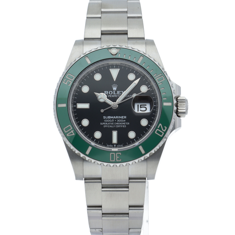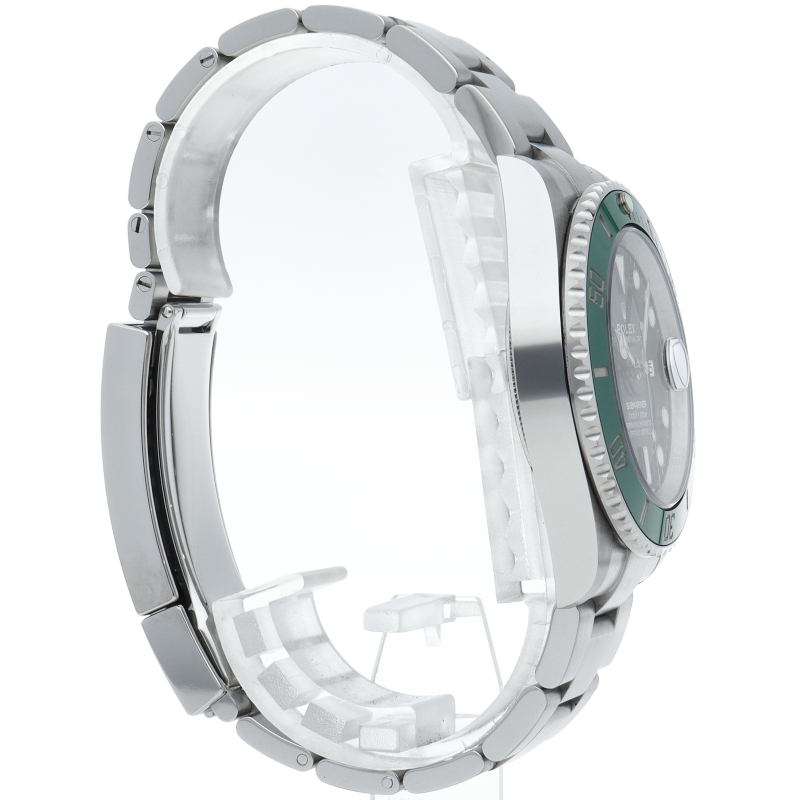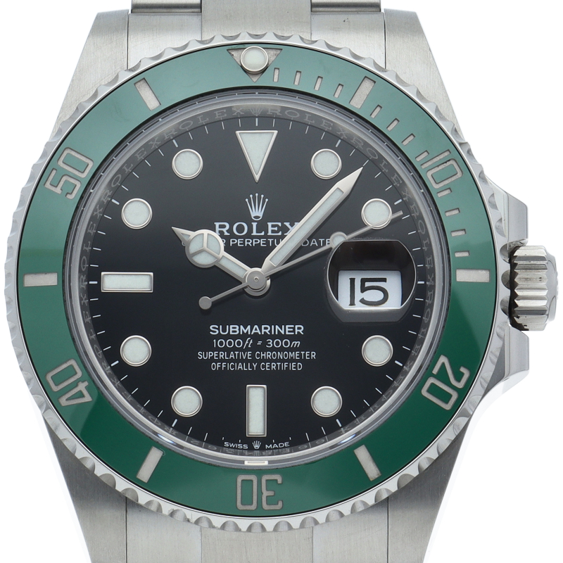 2003年にサブマリーナ誕生50周年記念として発表され高い人気を誇る“グリーンサブマリーナ”が新型自社ムーブメントを搭載しモデルチェンジしました。ブランドカラーであるグリーンのセラミックベゼルはそのままに文字盤がブラックになりました。ケースサイズは前作より1mm大きい41mmとなります。