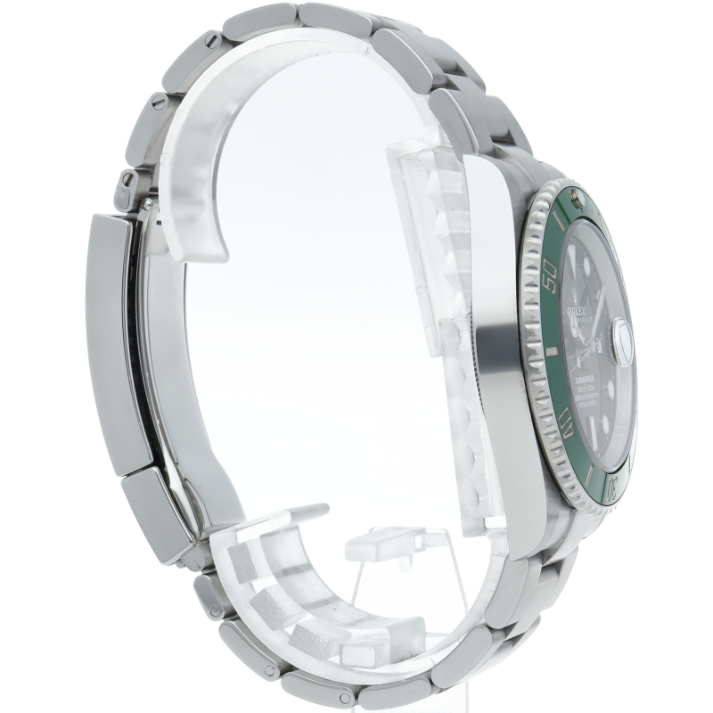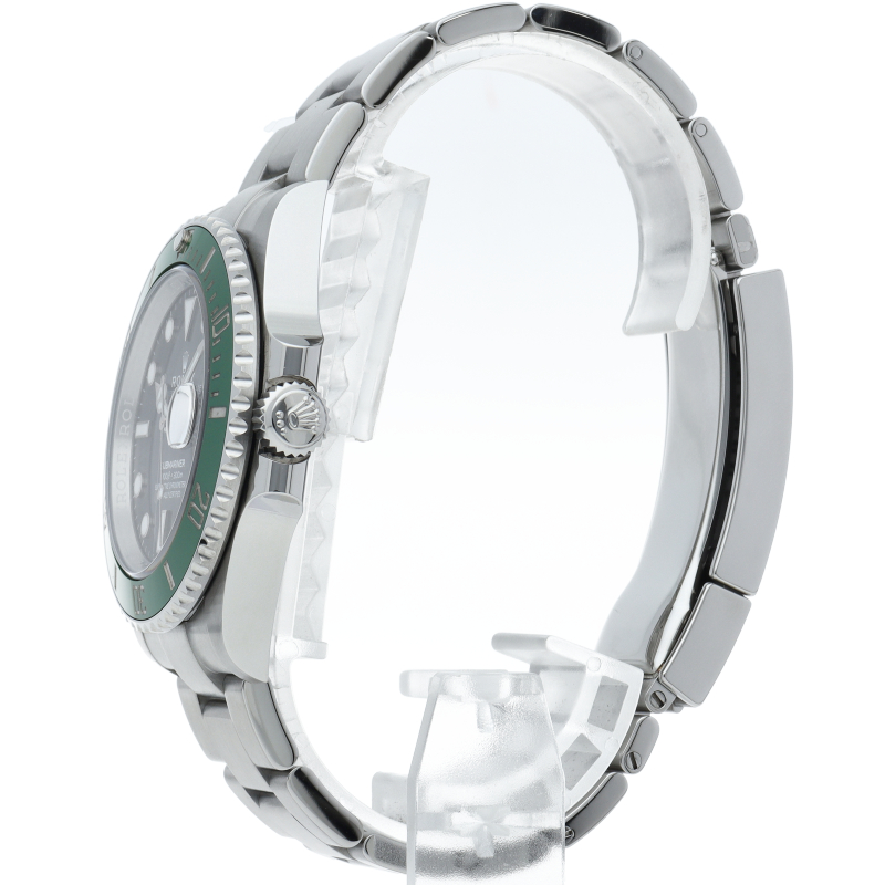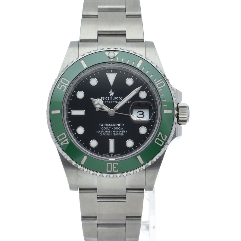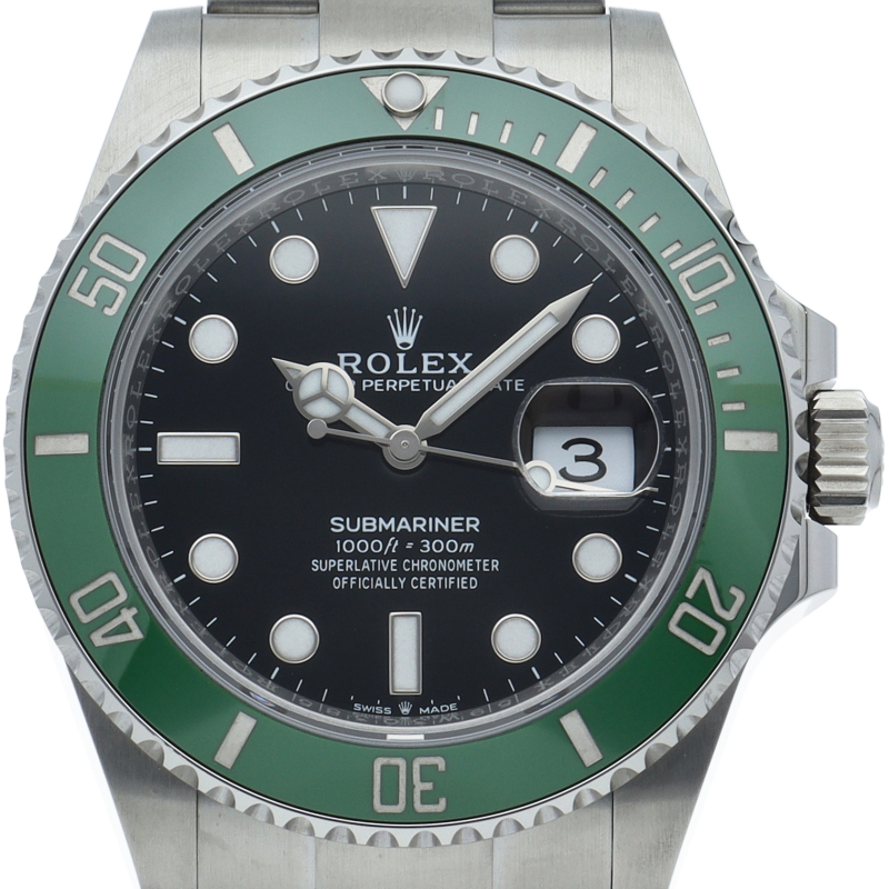 2003年にサブマリーナ誕生50周年記念として発表され高い人気を誇る“グリーンサブマリーナ”が新型自社ムーブメントを搭載しモデルチェンジしました。ブランドカラーであるグリーンのセラミックベゼルはそのままに文字盤がブラックになりました。ケースサイズは前作より1mm大きい41mmとなります。