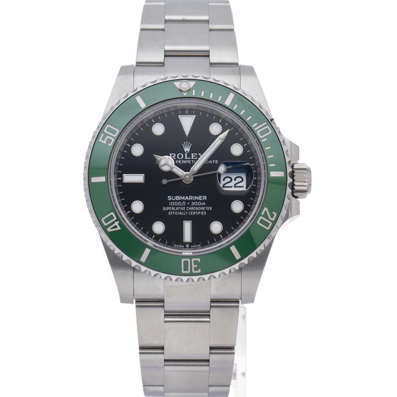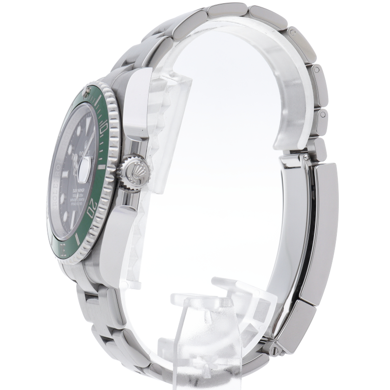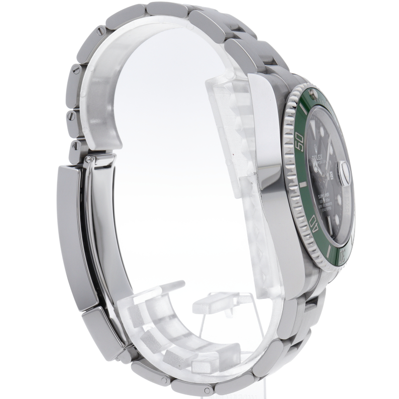 2003年にサブマリーナ誕生50周年記念として発表され高い人気を誇る“グリーンサブマリーナ”が新型自社ムーブメントを搭載しモデルチェンジしました。ブランドカラーであるグリーンのセラミックベゼルはそのままに文字盤がブラックになりました。ケースサイズは前作より1mm大きい41mmとなります。
