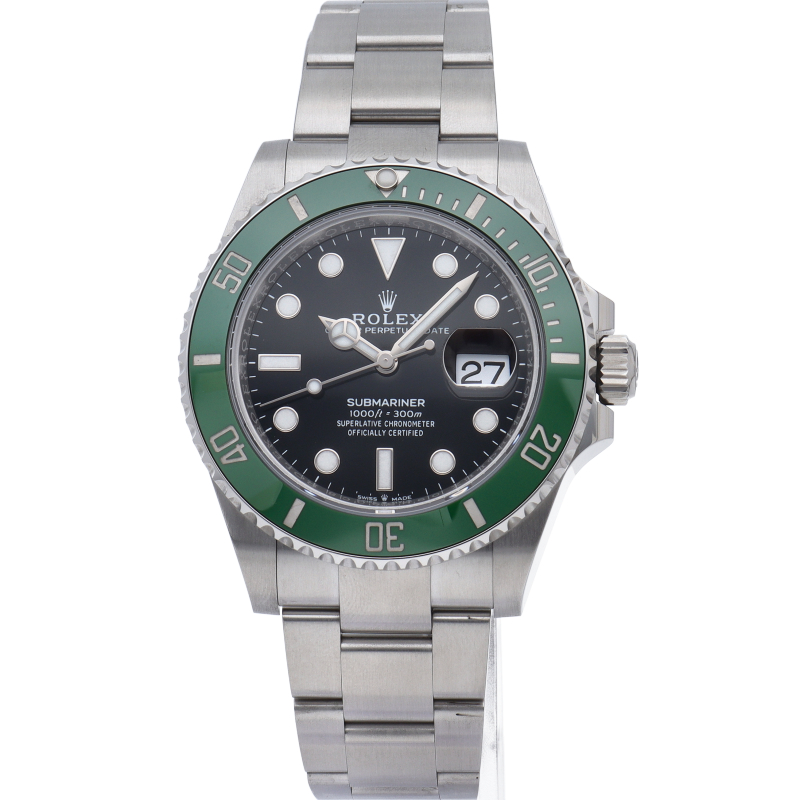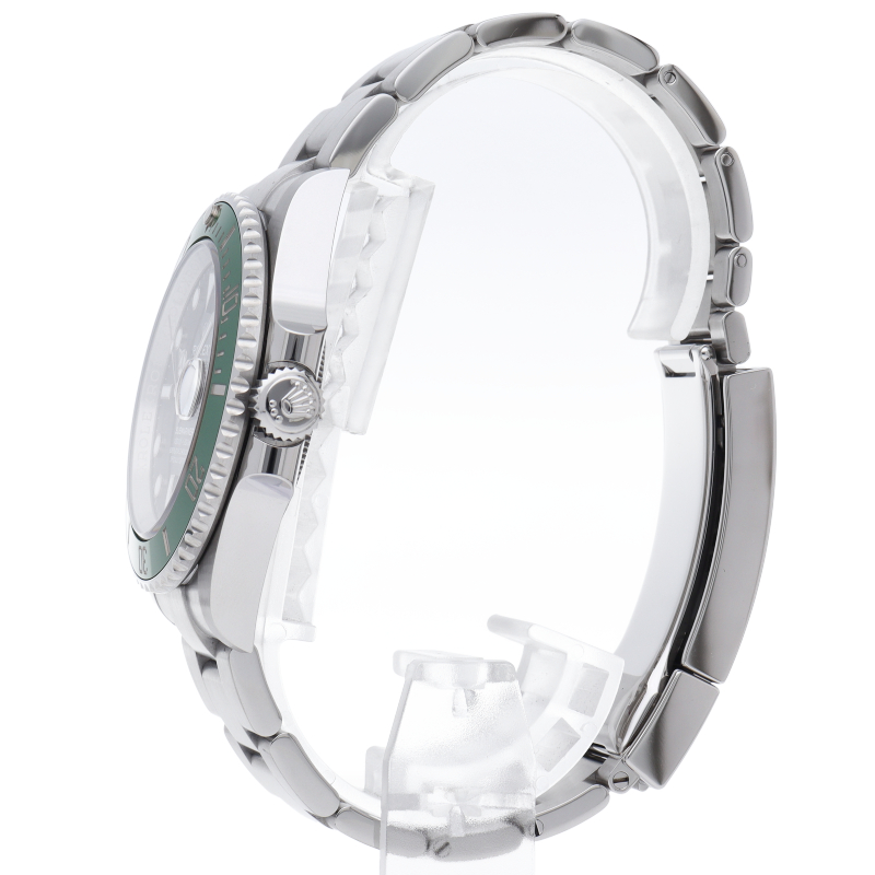 2003年にサブマリーナ誕生50周年記念として発表され高い人気を誇る“グリーンサブマリーナ”が新型自社ムーブメントを搭載しモデルチェンジしました。ブランドカラーであるグリーンのセラミックベゼルはそのままに文字盤がブラックになりました。ケースサイズは前作より1mm大きい41mmとなります。