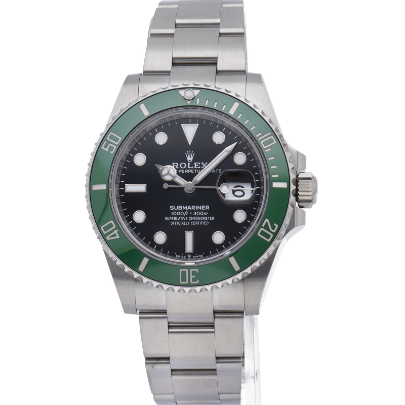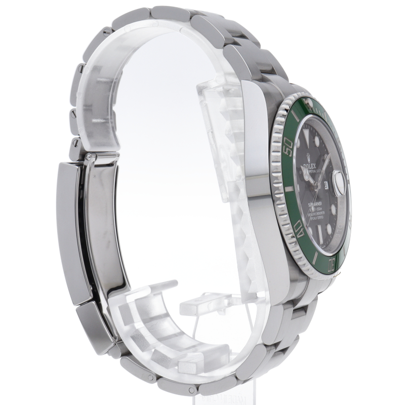 2003年にサブマリーナ誕生50周年記念として発表され高い人気を誇る“グリーンサブマリーナ”が新型自社ムーブメントを搭載しモデルチェンジしました。ブランドカラーであるグリーンのセラミックベゼルはそのままに文字盤がブラックになりました。ケースサイズは前作より1mm大きい41mmとなります。