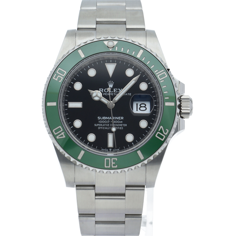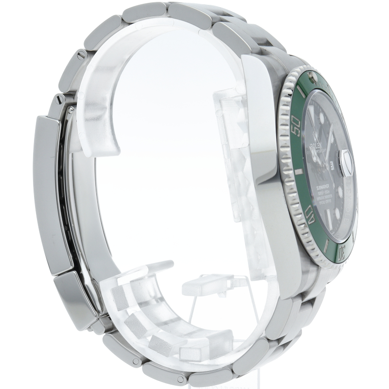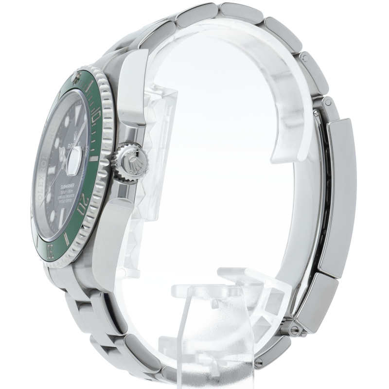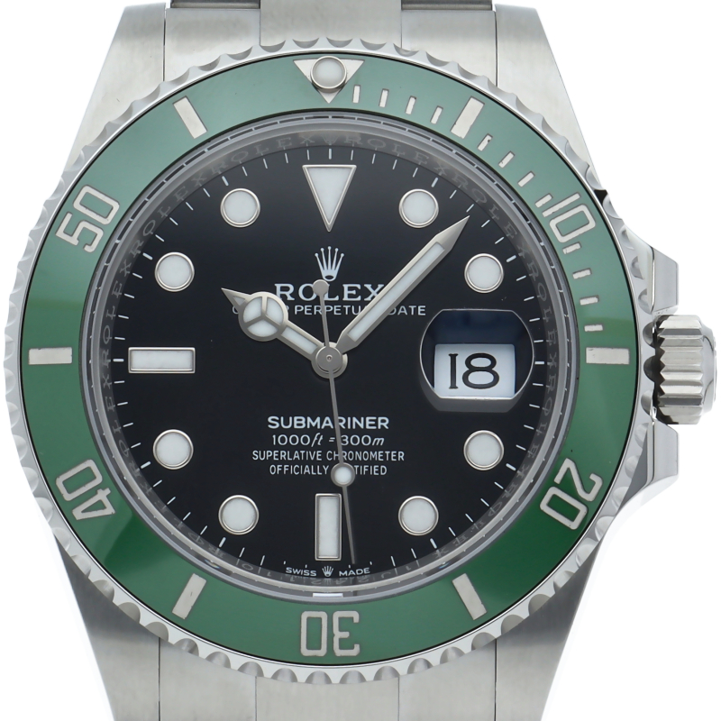 2003年にサブマリーナ誕生50周年記念として発表され高い人気を誇る“グリーンサブマリーナ”が新型自社ムーブメントを搭載しモデルチェンジしました。ブランドカラーであるグリーンのセラミックベゼルはそのままに文字盤がブラックになりました。ケースサイズは前作より1mm大きい41mmとなります。
