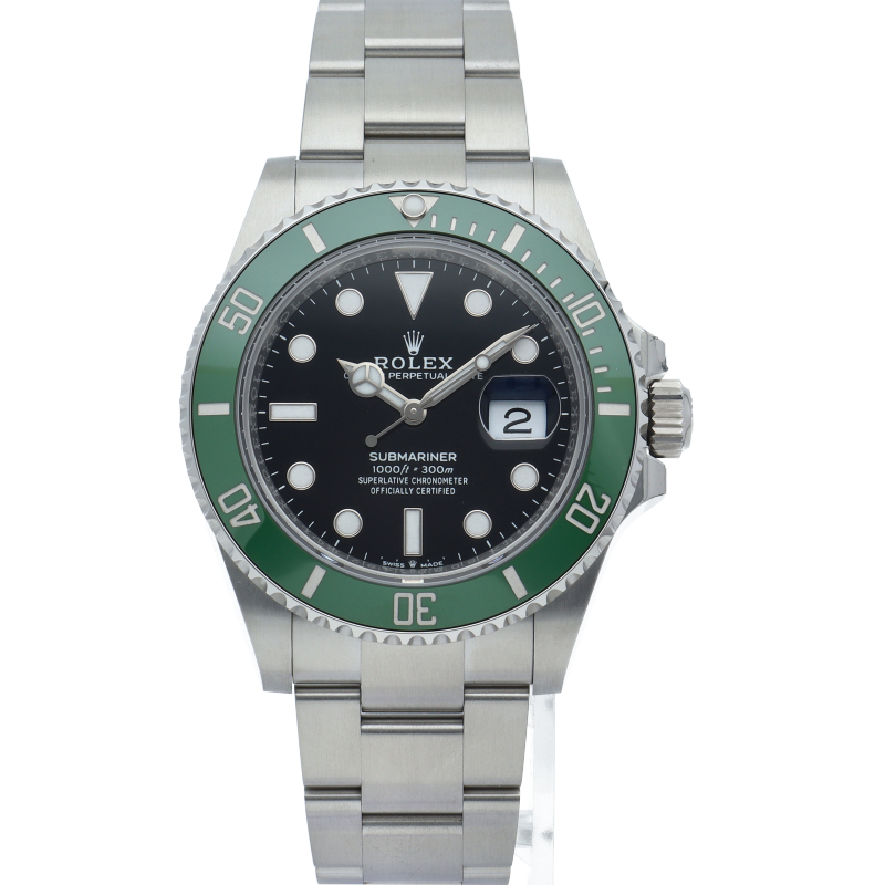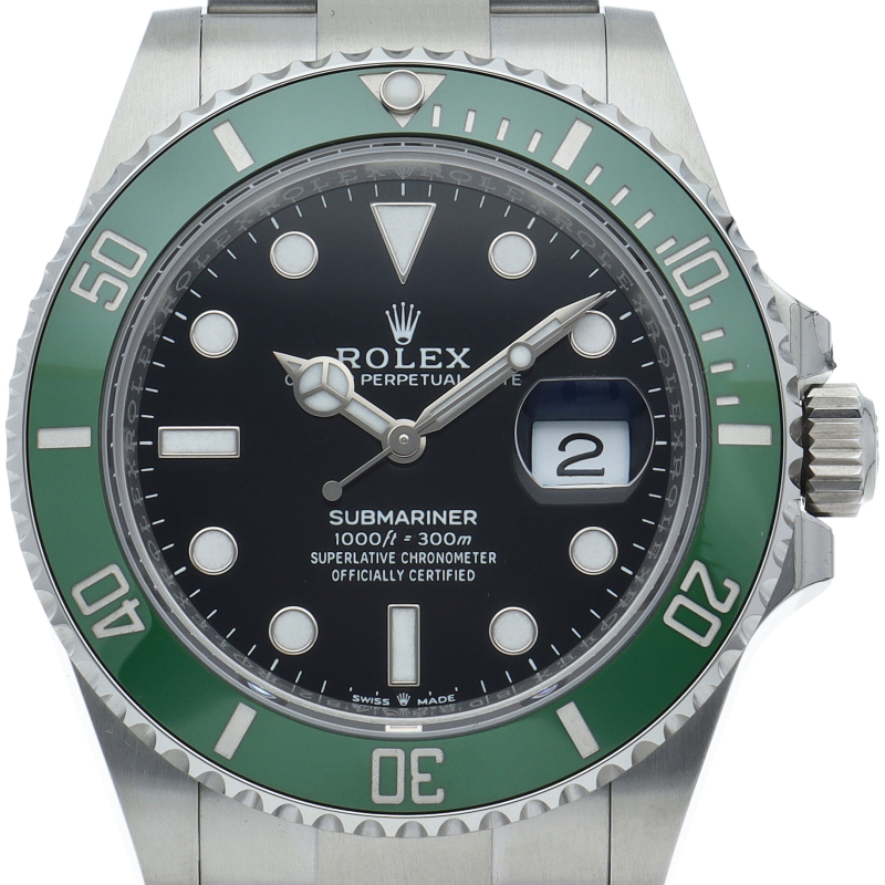 2003年にサブマリーナ誕生50周年記念として発表され高い人気を誇る“グリーンサブマリーナ”が新型自社ムーブメントを搭載しモデルチェンジしました。ブランドカラーであるグリーンのセラミックベゼルはそのままに文字盤がブラックになりました。ケースサイズは前作より1mm大きい41mmとなります。