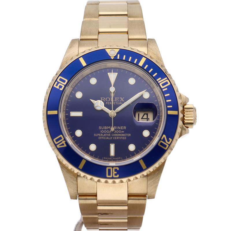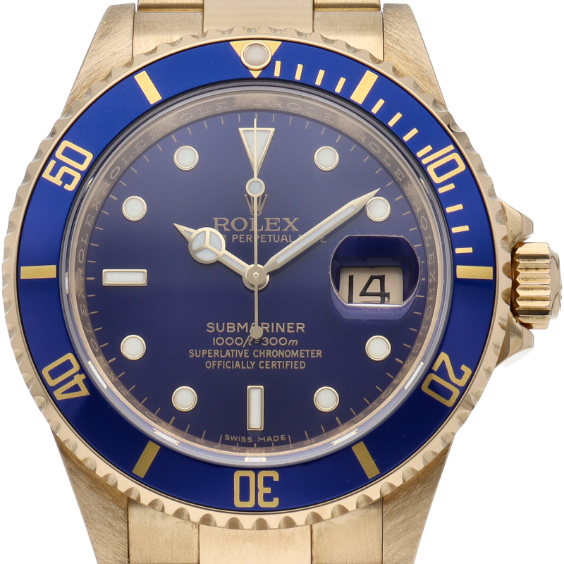 ロレックスの中でも特に人気度の高い「サブマリーナ・デイト」。イエローゴールドで高級感溢れる1本。通称「青サブ」。