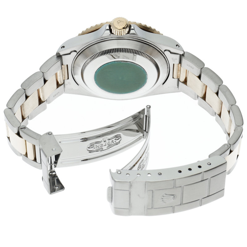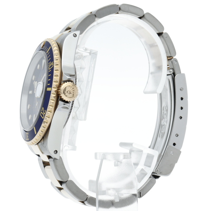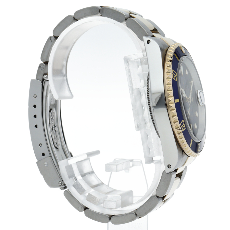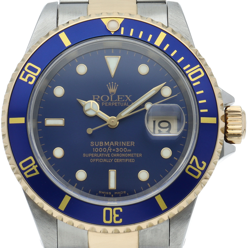 ロレックスの中でも特に人気度の高い「サブマリーナ・デイト」。イエローゴールドとステンレスのコンビモデルで高級感溢れる1本。通称「青サブ」。