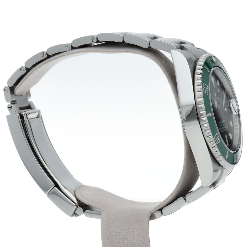 水深300mでも信頼性と精度が保証されているサブマリーナー。116610LVは文字盤とベゼルにロレックスのコーポレートカラーであるグリーンを用いることで特別なモデルとなっています。