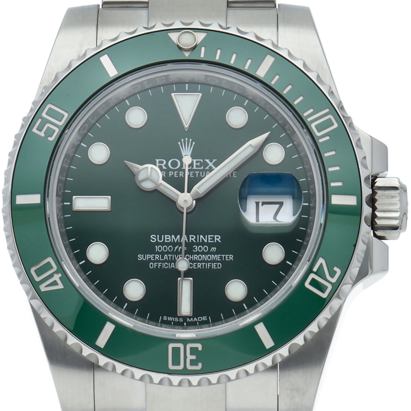 水深300mでも信頼性と精度が保証されているサブマリーナー。116610LVは文字盤とベゼルにロレックスのコーポレートカラーであるグリーンを用いることで特別なモデルとなっています。