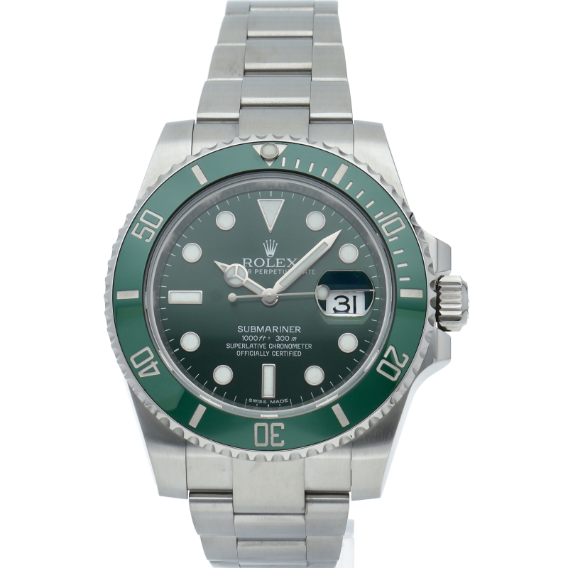水深300mでも信頼性と精度が保証されているサブマリーナー。116610LVは文字盤とベゼルにロレックスのコーポレートカラーであるグリーンを用いることで特別なモデルとなっています。