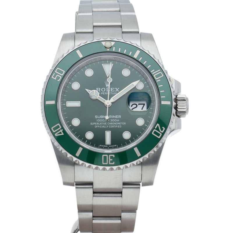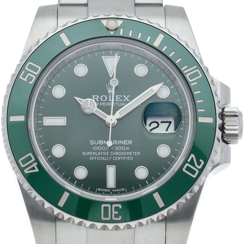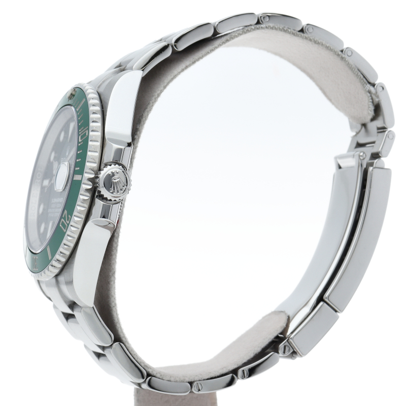 水深300mでも信頼性と精度が保証されているサブマリーナー。116610LVは文字盤とベゼルにロレックスのコーポレートカラーであるグリーンを用いることで特別なモデルとなっています。