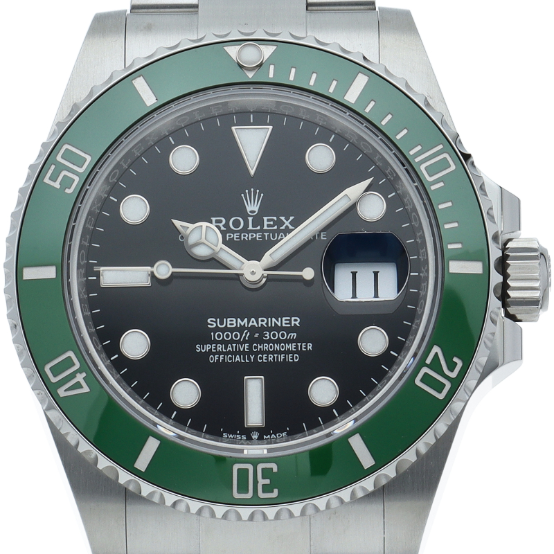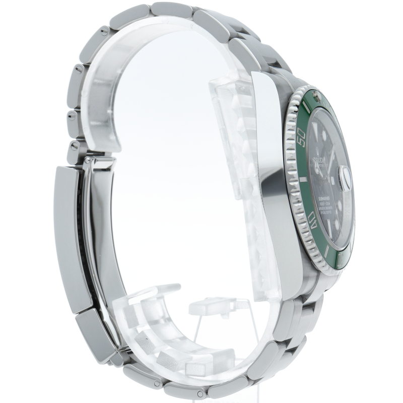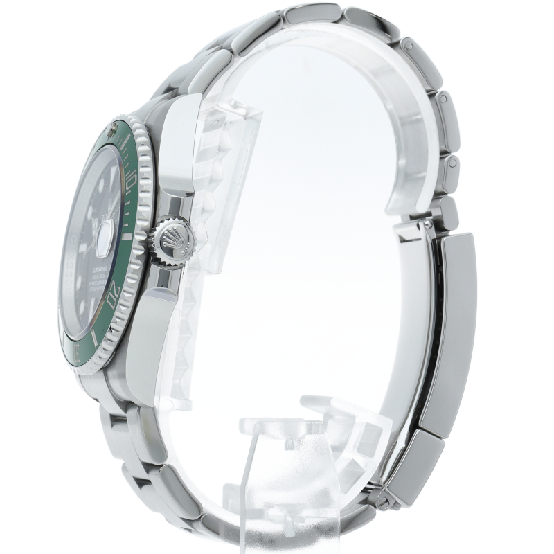 2003年にサブマリーナ誕生50周年記念として発表され高い人気を誇る“グリーンサブマリーナ”が新型自社ムーブメントを搭載しモデルチェンジしました。ブランドカラーであるグリーンのセラミックベゼルはそのままに文字盤がブラックになりました。ケースサイズは前作より1mm大きい41mmとなります。