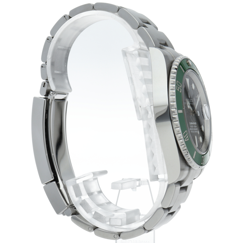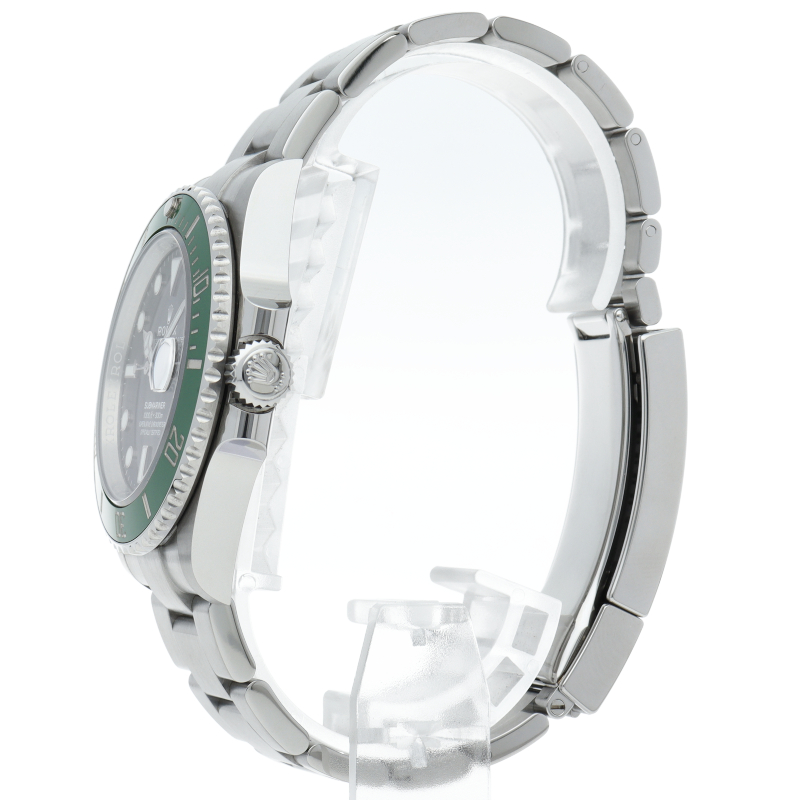 2003年にサブマリーナ誕生50周年記念として発表され高い人気を誇る“グリーンサブマリーナ”が新型自社ムーブメントを搭載しモデルチェンジしました。ブランドカラーであるグリーンのセラミックベゼルはそのままに文字盤がブラックになりました。ケースサイズは前作より1mm大きい41mmとなります。