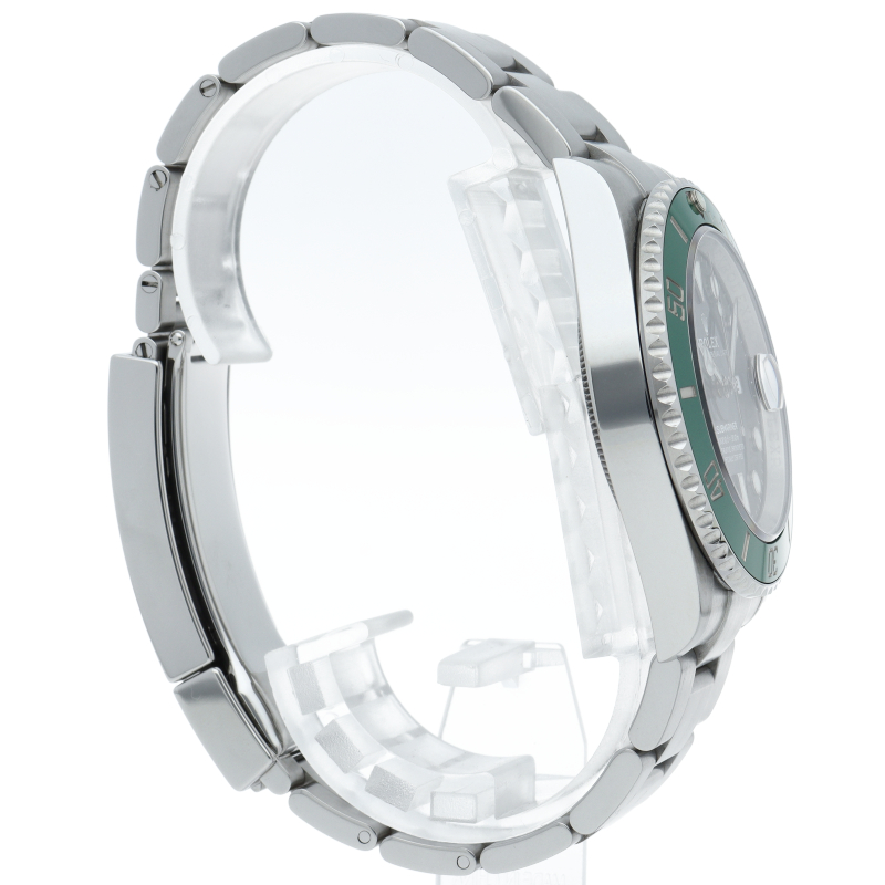 2003年にサブマリーナ誕生50周年記念として発表され高い人気を誇る“グリーンサブマリーナ”が新型自社ムーブメントを搭載しモデルチェンジしました。ブランドカラーであるグリーンのセラミックベゼルはそのままに文字盤がブラックになりました。ケースサイズは前作より1mm大きい41mmとなります。