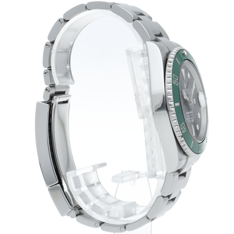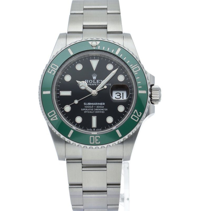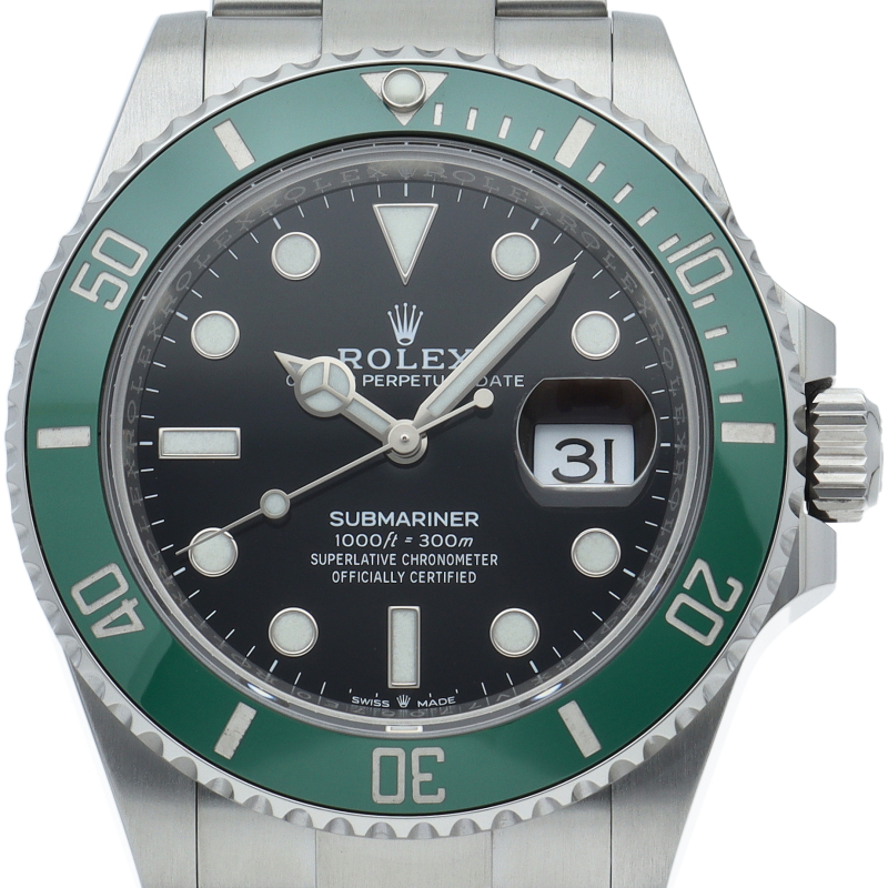 2003年にサブマリーナ誕生50周年記念として発表され高い人気を誇る“グリーンサブマリーナ”が新型自社ムーブメントを搭載しモデルチェンジしました。ブランドカラーであるグリーンのセラミックベゼルはそのままに文字盤がブラックになりました。ケースサイズは前作より1mm大きい41mmとなります。