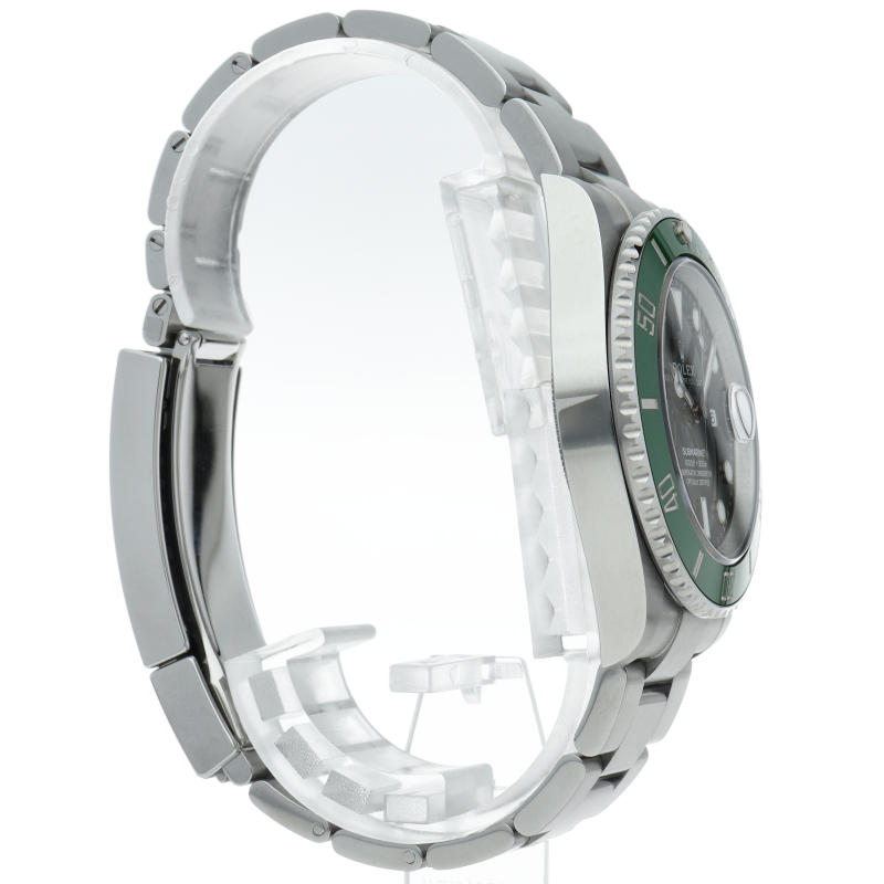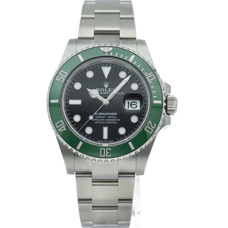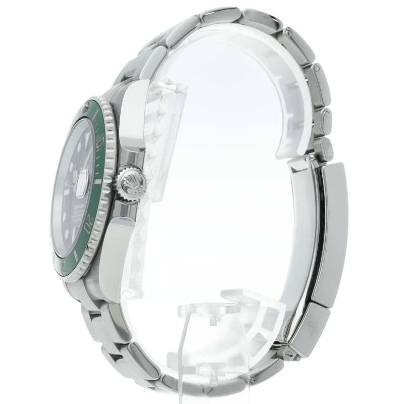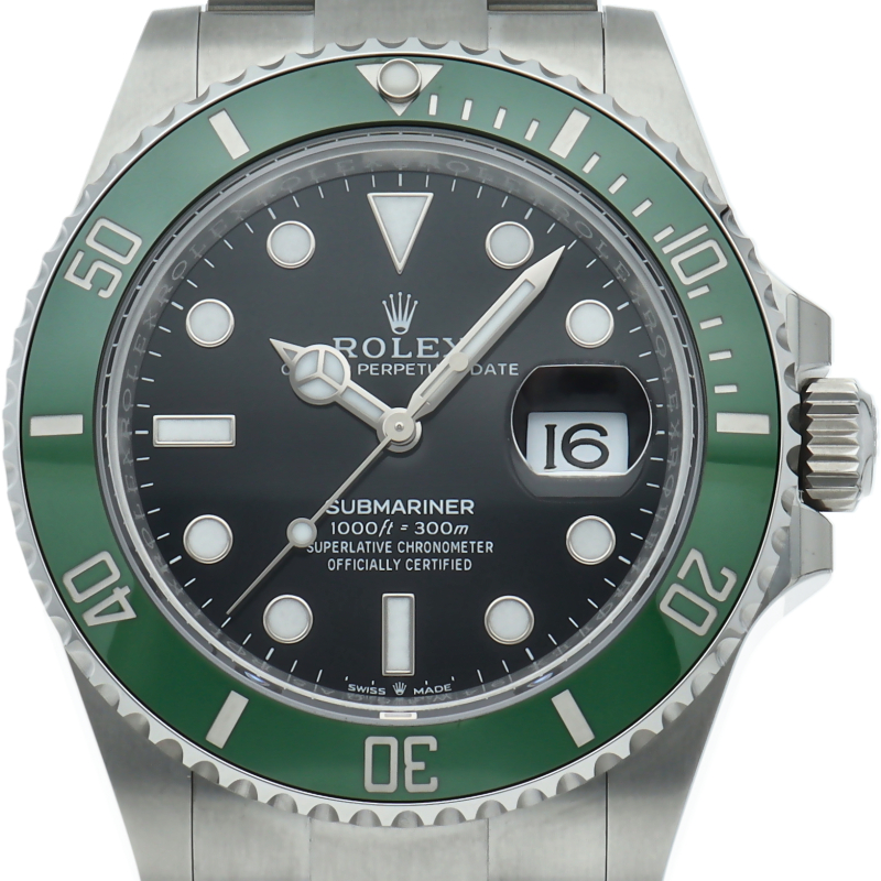 2003年にサブマリーナ誕生50周年記念として発表され高い人気を誇る“グリーンサブマリーナ”が新型自社ムーブメントを搭載しモデルチェンジしました。ブランドカラーであるグリーンのセラミックベゼルはそのままに文字盤がブラックになりました。ケースサイズは前作より1mm大きい41mmとなります。