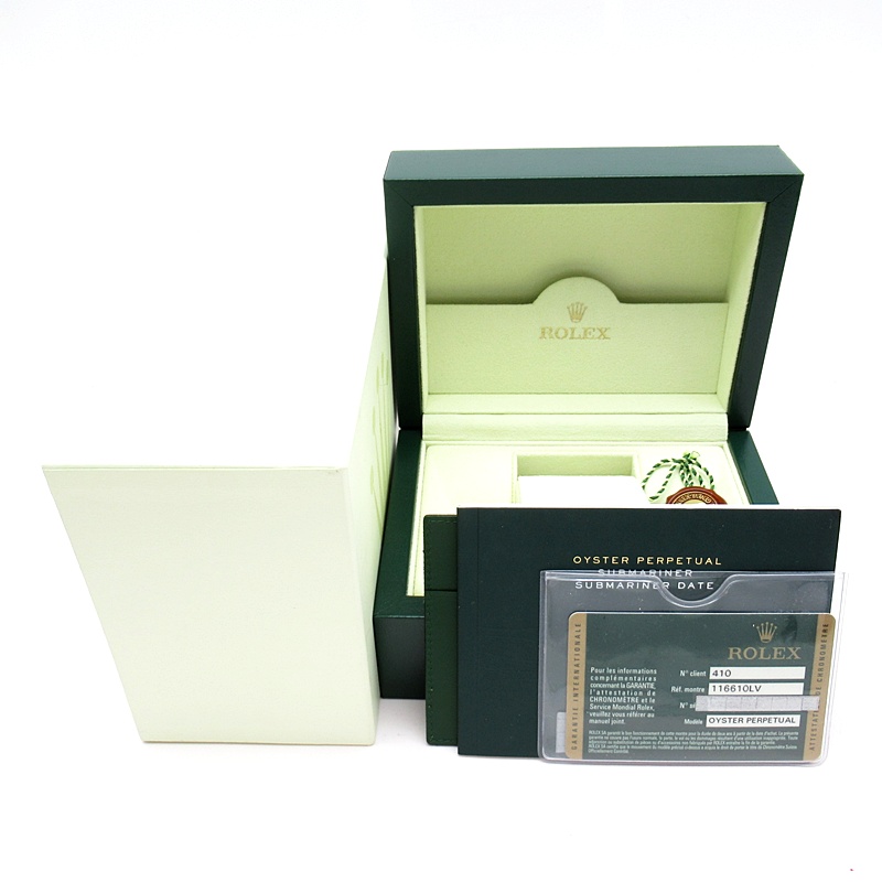水深300mでも信頼性と精度が保証されているサブマリーナー。116610LVは文字盤とベゼルにロレックスのコーポレートカラーであるグリーンを用いることで特別なモデルとなっています。