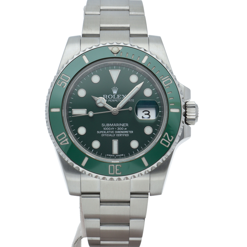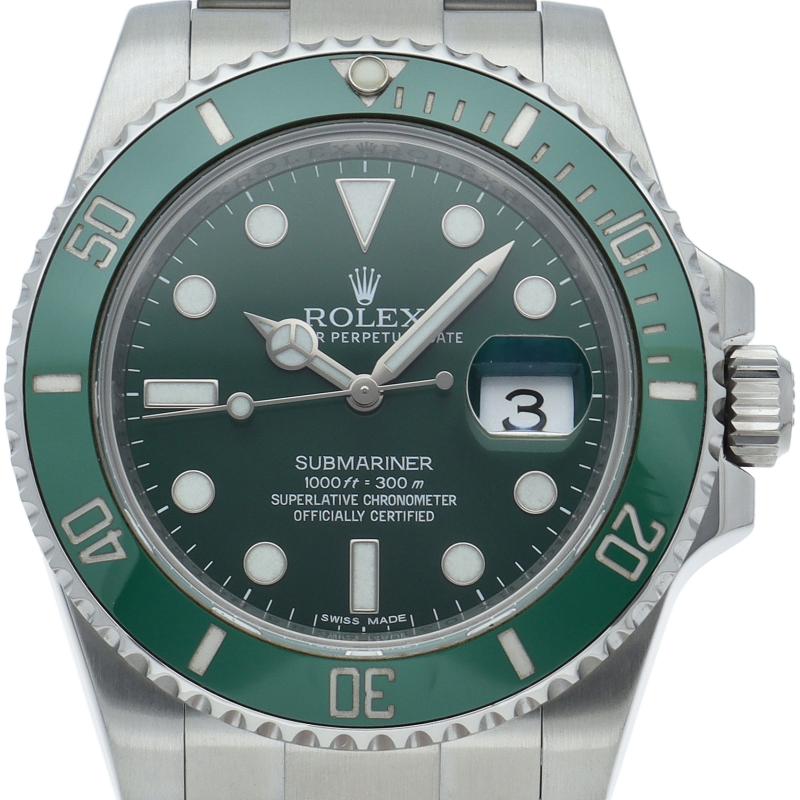 水深300mでも信頼性と精度が保証されているサブマリーナー。116610LVは文字盤とベゼルにロレックスのコーポレートカラーであるグリーンを用いることで特別なモデルとなっています。
