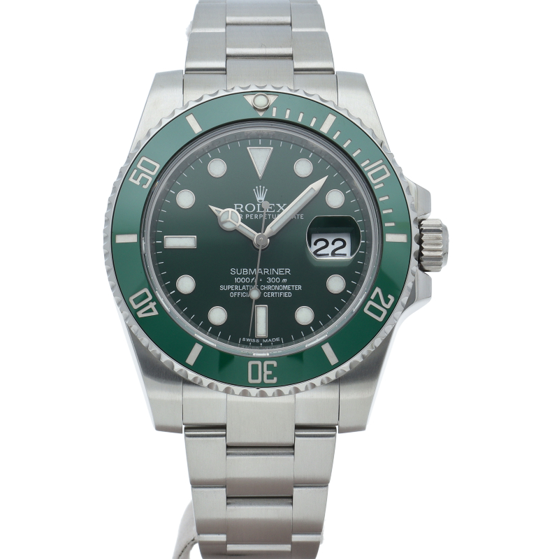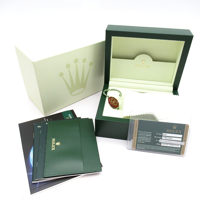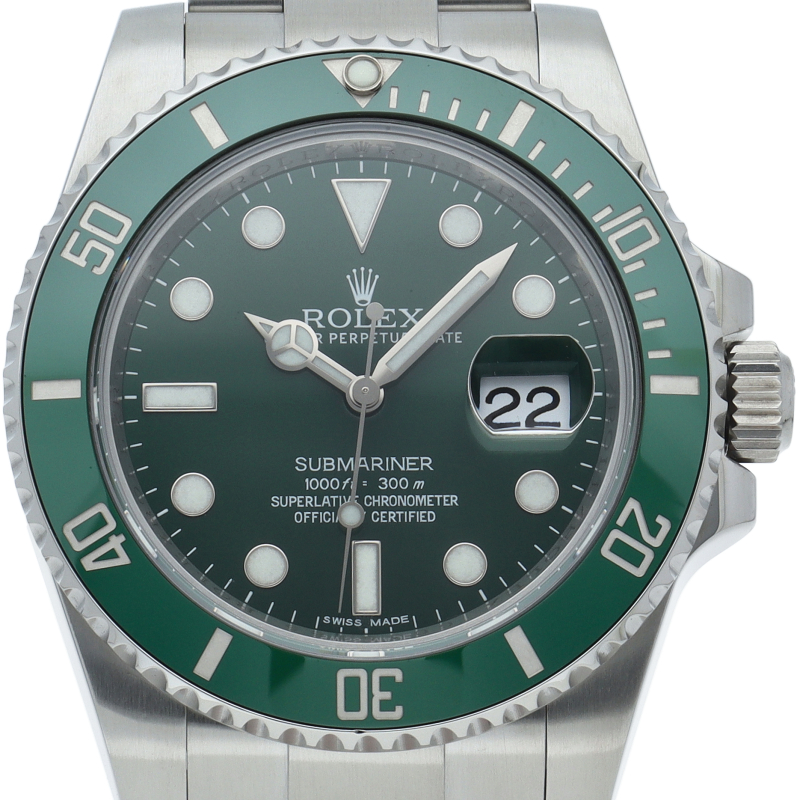 水深300mでも信頼性と精度が保証されているサブマリーナー。116610LVは文字盤とベゼルにロレックスのコーポレートカラーであるグリーンを用いることで特別なモデルとなっています。