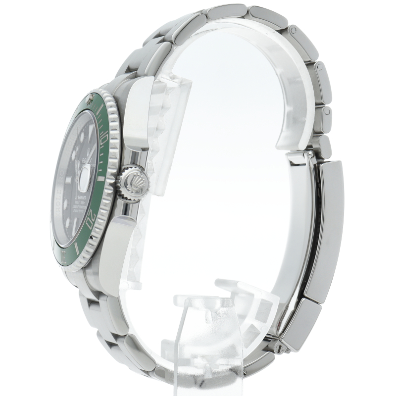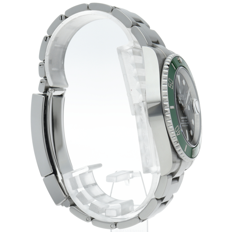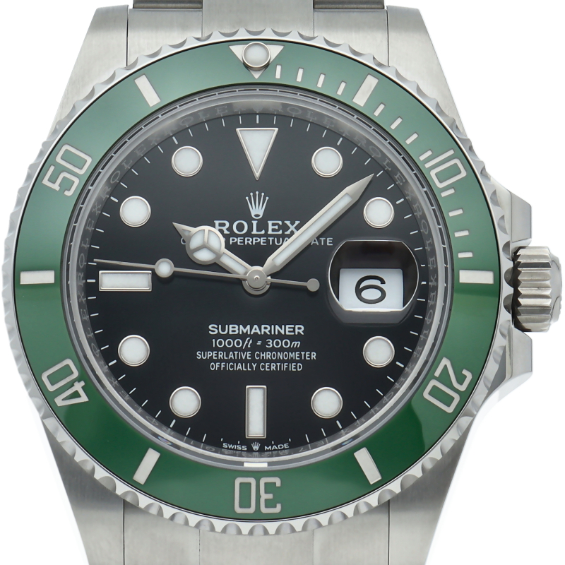 2003年にサブマリーナ誕生50周年記念として発表され高い人気を誇る“グリーンサブマリーナ”が新型自社ムーブメントを搭載しモデルチェンジしました。ブランドカラーであるグリーンのセラミックベゼルはそのままに文字盤がブラックになりました。ケースサイズは前作より1mm大きい41mmとなります。