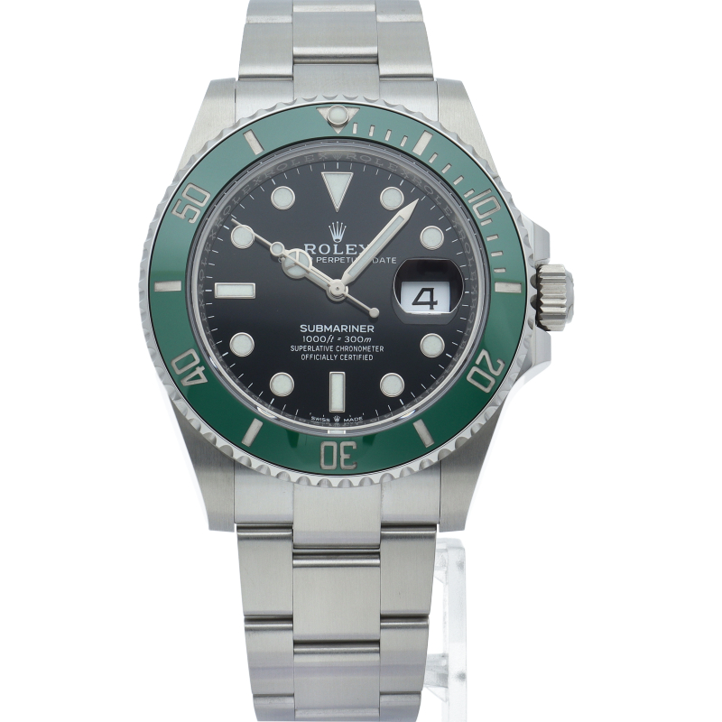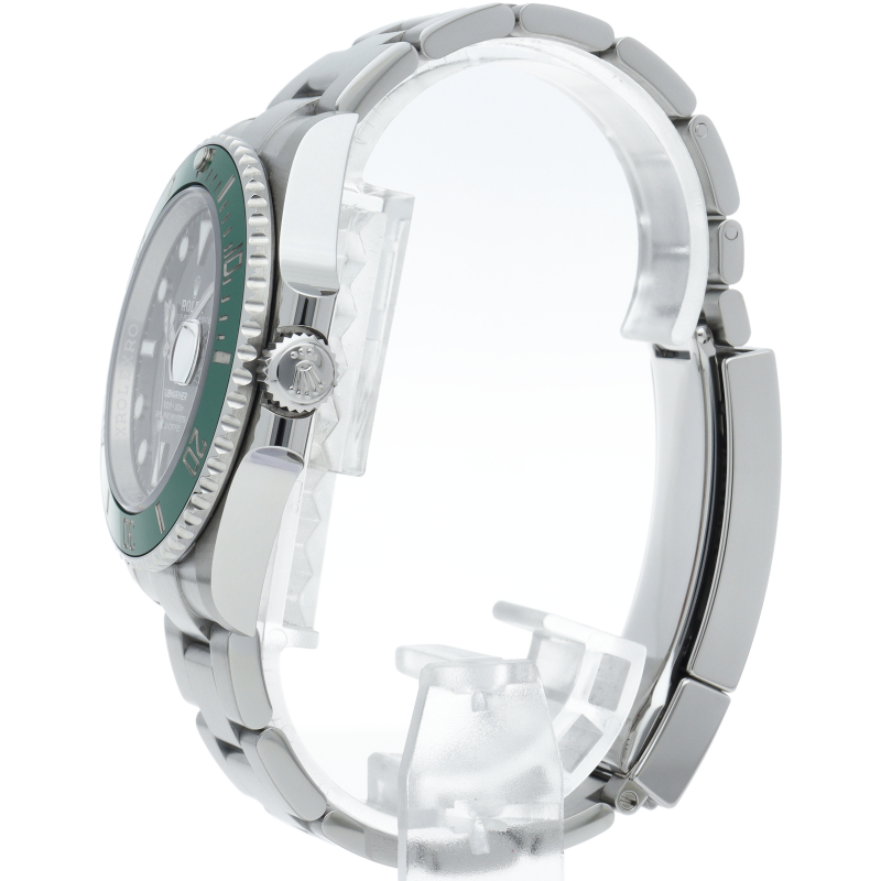 2003年にサブマリーナ誕生50周年記念として発表され高い人気を誇る“グリーンサブマリーナ”が新型自社ムーブメントを搭載しモデルチェンジしました。ブランドカラーであるグリーンのセラミックベゼルはそのままに文字盤がブラックになりました。ケースサイズは前作より1mm大きい41mmとなります。