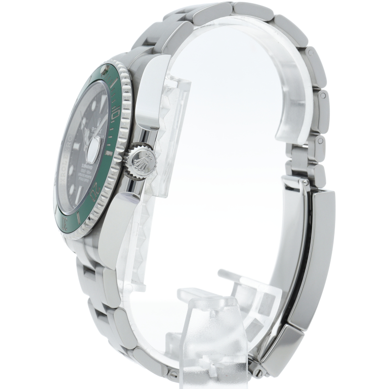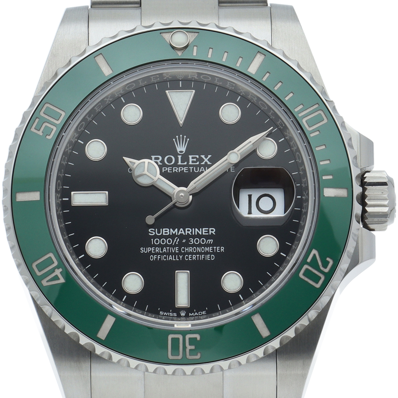 2003年にサブマリーナ誕生50周年記念として発表され高い人気を誇る“グリーンサブマリーナ”が新型自社ムーブメントを搭載しモデルチェンジしました。ブランドカラーであるグリーンのセラミックベゼルはそのままに文字盤がブラックになりました。ケースサイズは前作より1mm大きい41mmとなります。