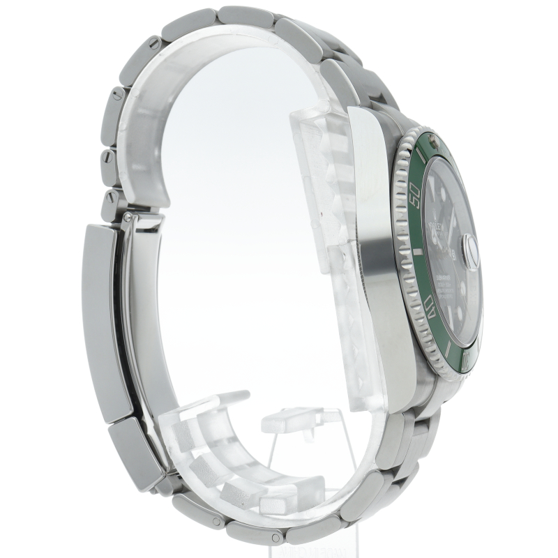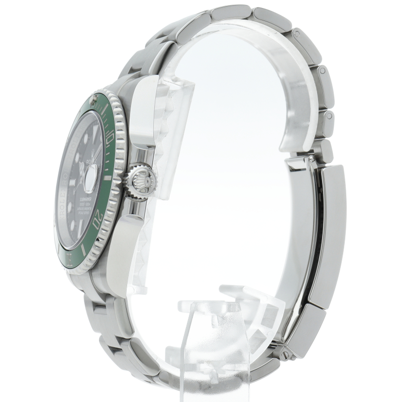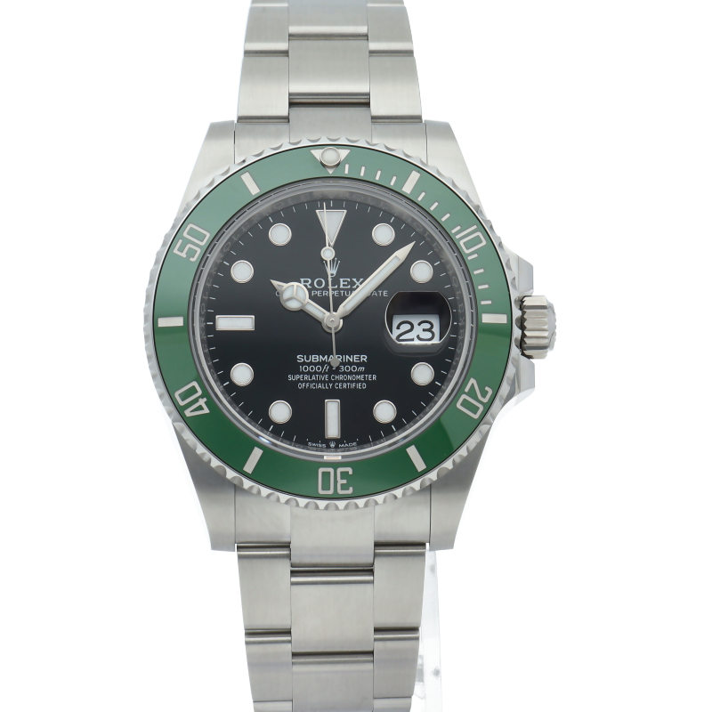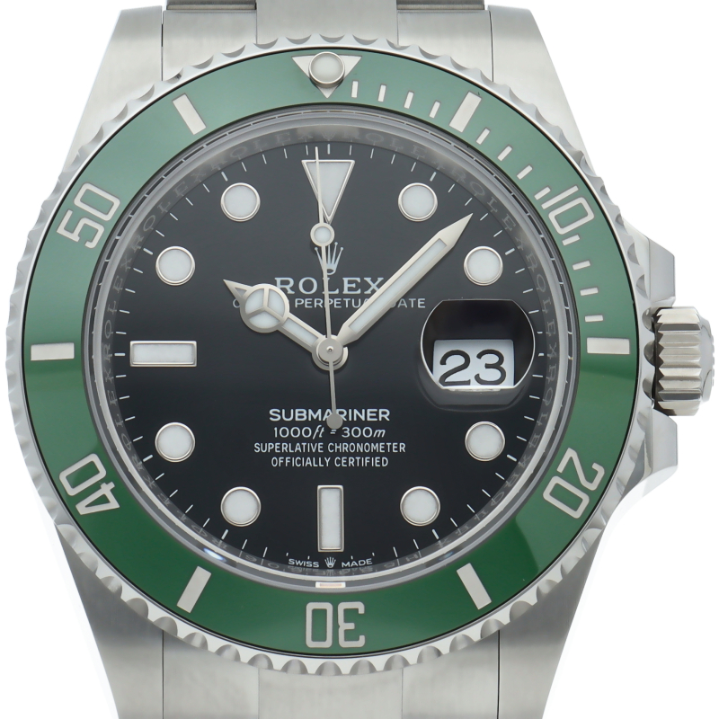 2003年にサブマリーナ誕生50周年記念として発表され高い人気を誇る“グリーンサブマリーナ”が新型自社ムーブメントを搭載しモデルチェンジしました。ブランドカラーであるグリーンのセラミックベゼルはそのままに文字盤がブラックになりました。ケースサイズは前作より1mm大きい41mmとなります。