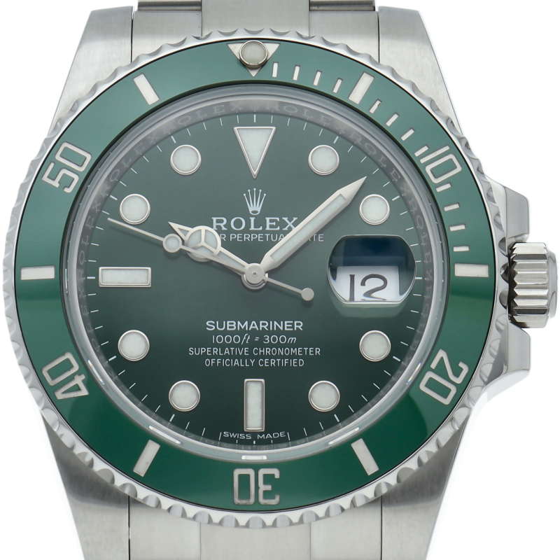 水深300mでも信頼性と精度が保証されているサブマリーナー。116610LVは文字盤とベゼルにロレックスのコーポレートカラーであるグリーンを用いることで特別なモデルとなっています。