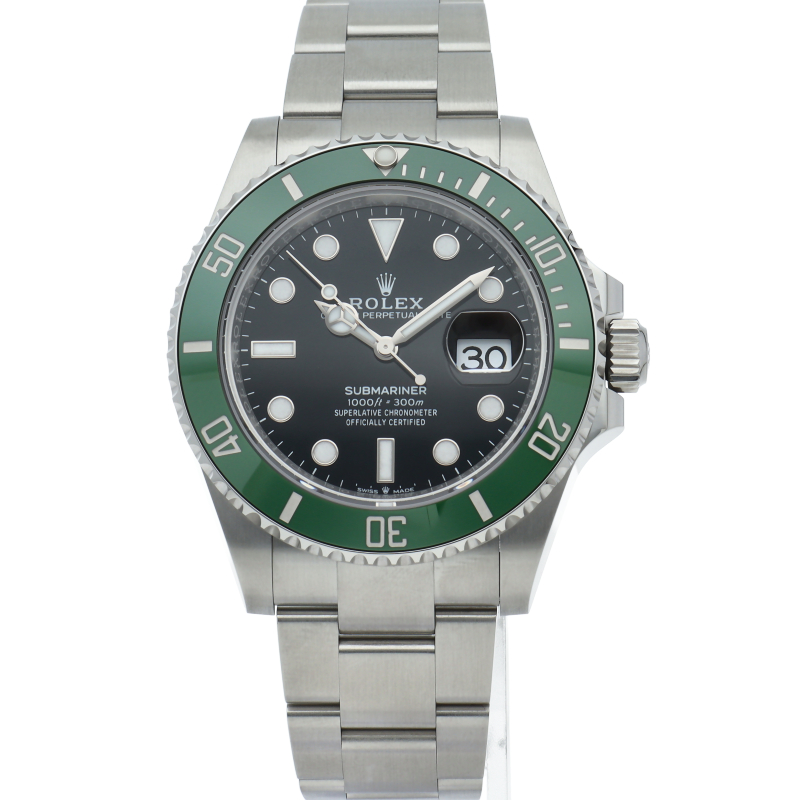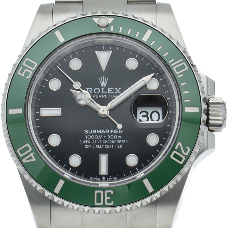 2003年にサブマリーナ誕生50周年記念として発表され高い人気を誇る“グリーンサブマリーナ”が新型自社ムーブメントを搭載しモデルチェンジしました。ブランドカラーであるグリーンのセラミックベゼルはそのままに文字盤がブラックになりました。ケースサイズは前作より1mm大きい41mmとなります。