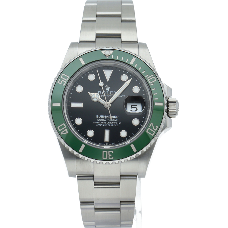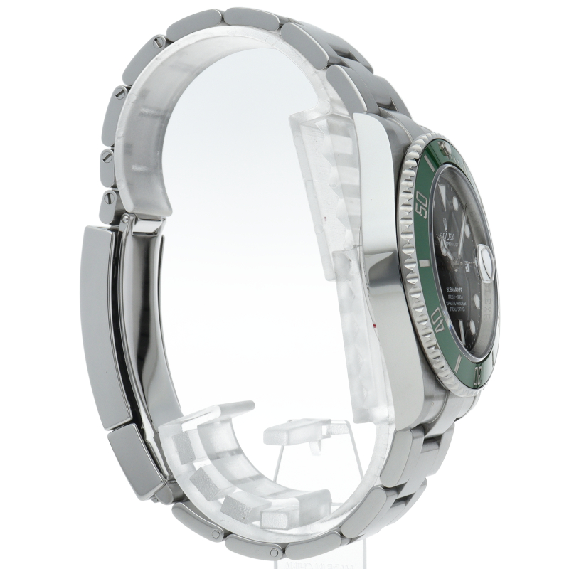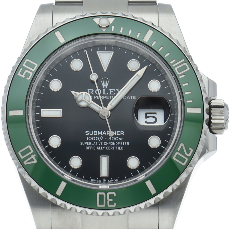 2003年にサブマリーナ誕生50周年記念として発表され高い人気を誇る“グリーンサブマリーナ”が新型自社ムーブメントを搭載しモデルチェンジしました。ブランドカラーであるグリーンのセラミックベゼルはそのままに文字盤がブラックになりました。ケースサイズは前作より1mm大きい41mmとなります。